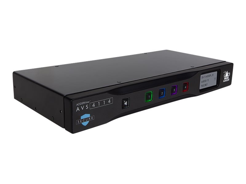 AdderView Secure AVS-4114 - Single-Head - KVM-/Audio-Switch - 4 x KVM/Audio - 1 lokaler Benutzer - Desktop - TAA-konform