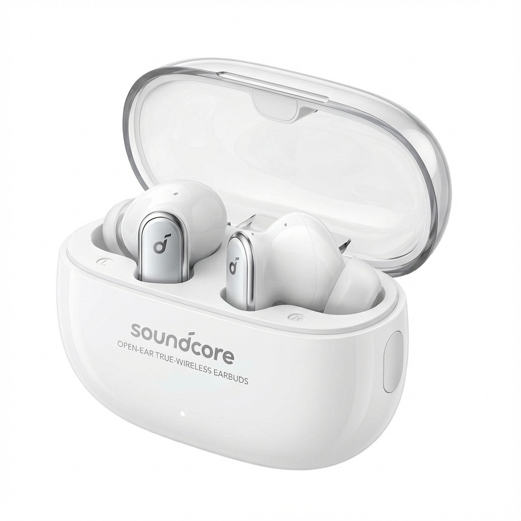Produkttyp: True Wireless-Kopfhörer - Bluetooth - kabellos,Gewicht: 48.8 g,Farbe: Weiß,Empfohlene Verwendung: Tragbare Elektronik,Merkmale: Berührungssteuerung, remapbare Touch-Steuerelemente, KI-Algorithmus-Aufruft Technologie, LED-Statusleiste, soundcore App-kompatibel,Schutz: IP55,Max. Betriebsabstand: 10 m,Kopfhörer-Formfaktor: Offenes Ohr - über dem Ohr angebracht,Anschlusstechnik: Kabellos,Drahtlose Technologie: Bluetooth,Bluetooth-Version: Bluetooth 5.4,Soundmodus: Stereo,Frequenzgang: 20 - 20000 Hz,Impedanz: 16 Ohm,Formfaktor: Eingebaut,Mit Mikrofonen: 4,Steuerung: Abspielen/Pause, Nächster/vorheriger Titel, Anruf annehmen, Anruf ablehnen,Zubehör im Lieferumfang: Magnetic charging case (470 mAh), USB-C-Ladekabel, 4 adjustable hooks (lv1, lv2, lv3, lv4),Kabeldetails: USB-C Ladekabel - ablösbar,Batterie: Headsetbatterie wiederaufladbar,Kapazität: 60 mAh,Laufzeitdetails: Andauernde Wiedergabe: bis zu 6 Stunden ¦ Andauernde Wiedergabe (mit enthaltenem Ladecase): bis zu 21 Stunden,Service und Support: Begrenzte Garantie - 18 Monate
