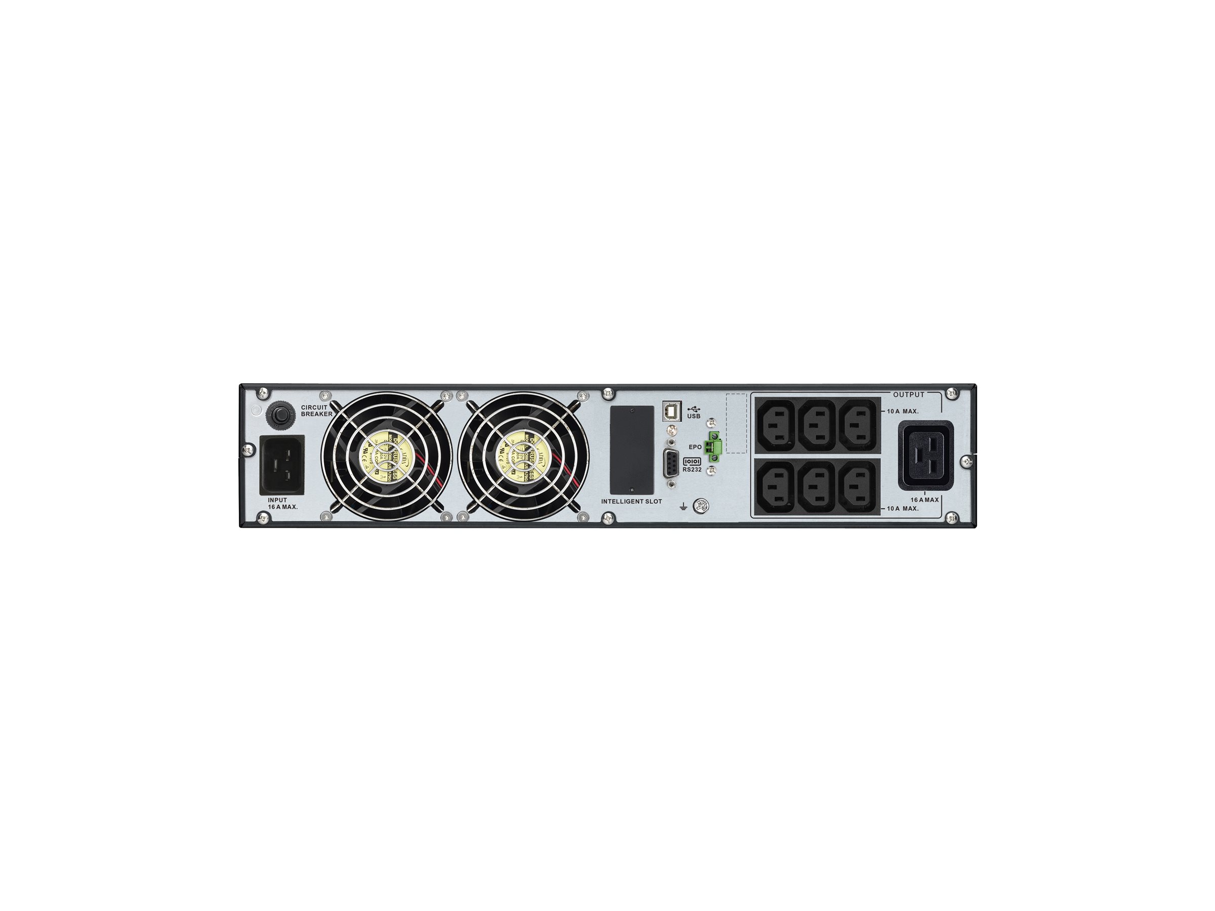 | Schnittstellen | 1 x Verwaltung (USB) - 4-poliger USB Typ B ¦ 1 x Verwaltung (RS-232) - D-Sub (DB-9), 9-polig ¦ 1 x EPO (emergency power off) |