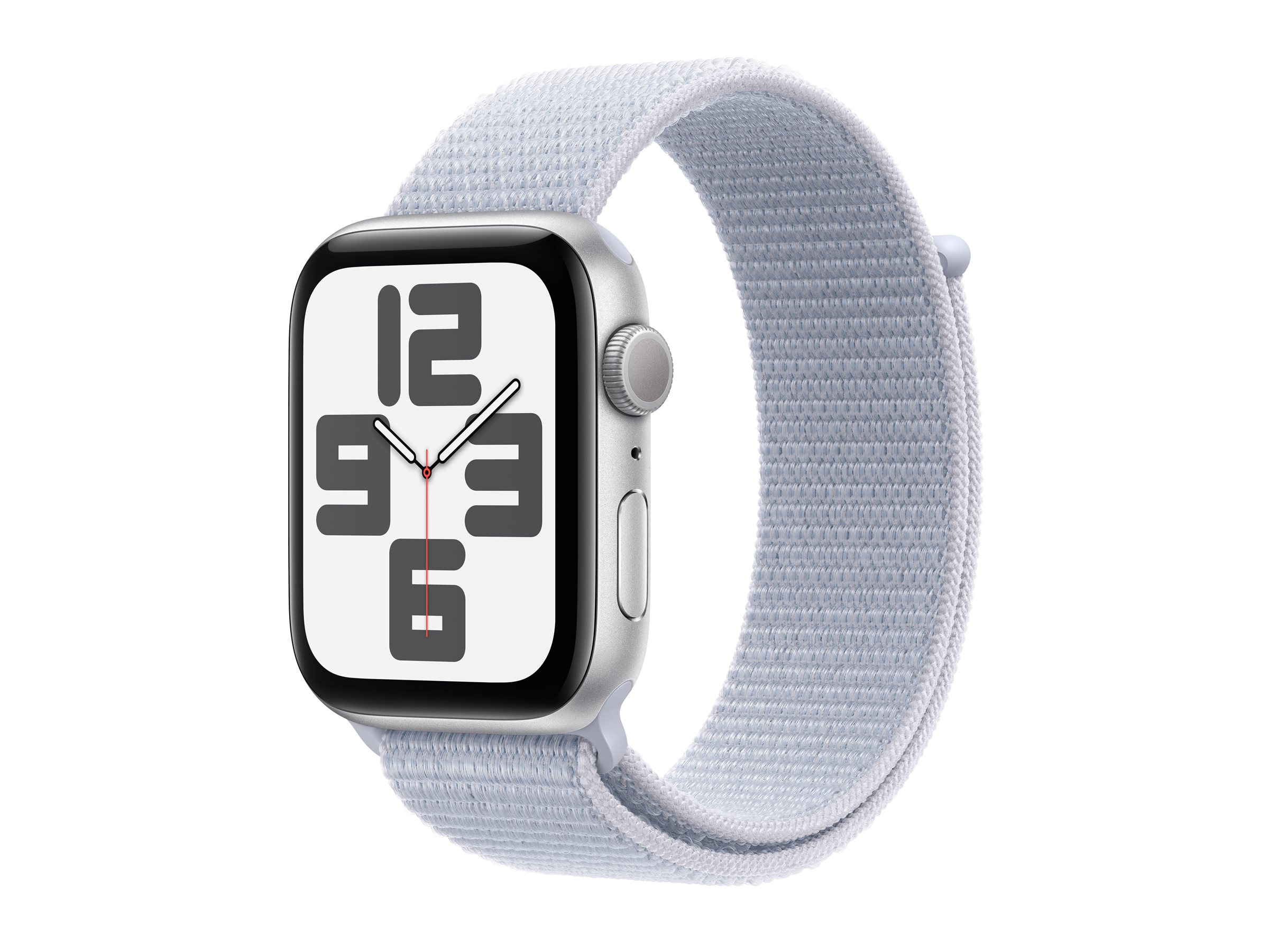 Apple Watch SE (GPS) - 44 mm - Aluminium, Silber - intelligente Uhr mit Sportschleife - weiches doppellagiges Nylon - Blaue Wolke - Handgelenkgröße: 130-200 mm - 32 GB - Wi-Fi 4, Bluetooth - 32.9 g