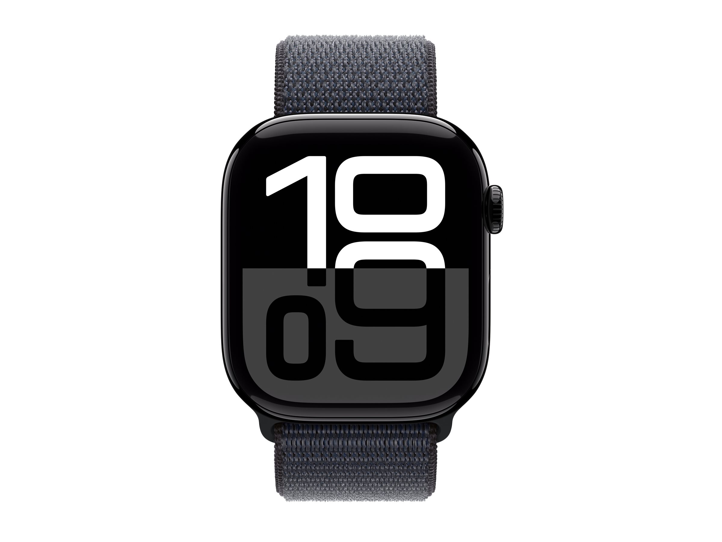Apple Watch Series 10 (GPS) - 46 mm - Jet-Schwarz Aluminium - intelligente Uhr mit Sportschleife - weiches doppellagiges Nylon - Tinte - Handgelenkgröße: 130-200 mm - 64 GB - Wi-Fi 4, UWB, Bluetooth - 36.4 g