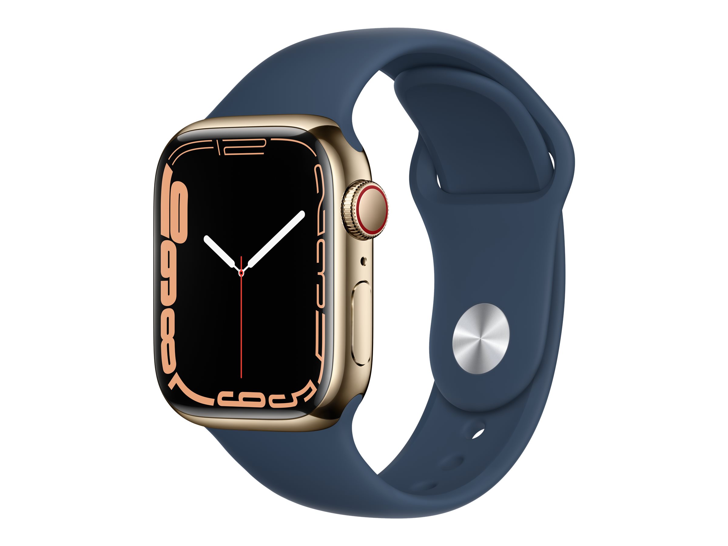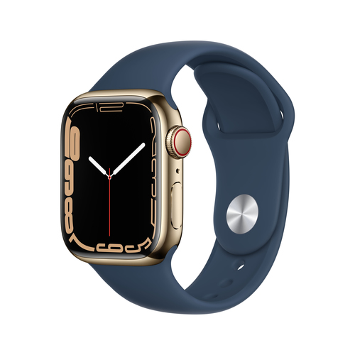 Apple Watch Series 7 (GPS + Cellular) - 41 mm - Gold, Edelstahl - intelligente Uhr mit Sportband - Flouroelastomer - Abyss Blue - Bandgröße: regelmäßig - 32 GB - Wi-Fi, Bluetooth - 4G - 42.3 g