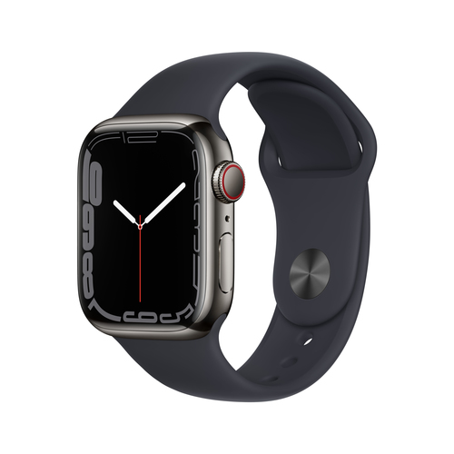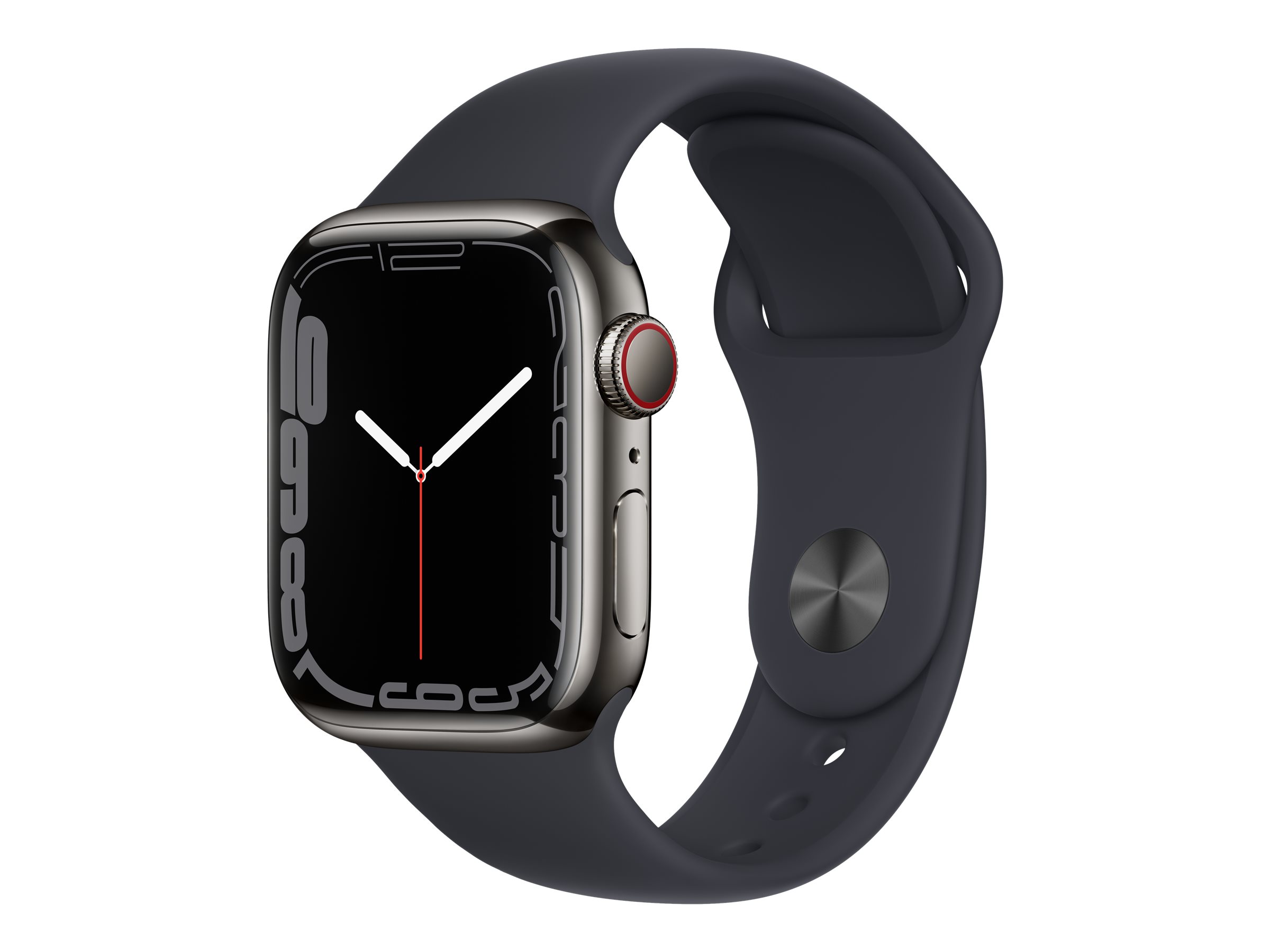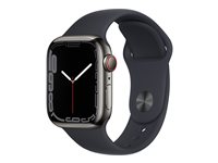 Apple Watch Series 7 (GPS + Cellular) - 41 mm - Graphite Stainless Steel - intelligente Uhr mit Sportband - Flouroelastomer - Midnight - Bandgröße: regelmäßig - 32 GB - Wi-Fi, Bluetooth - 4G - 42.3 g