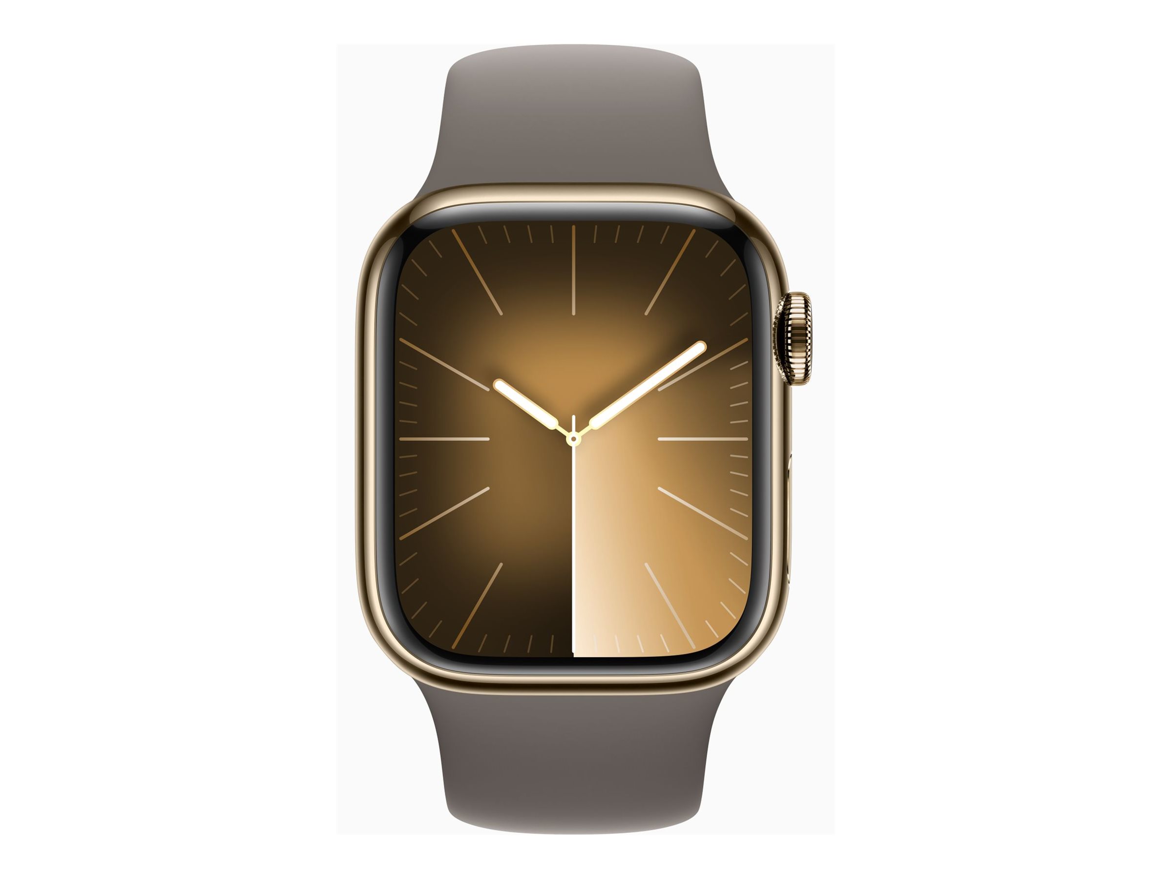 Apple Watch Series 9 (GPS + Cellular) - 41 mm - Gold, Edelstahl - intelligente Uhr mit Sportband - Flouroelastomer - Clay - Bandgröße: M/L - 64 GB - Wi-Fi, Bluetooth, UWB, LTE - 4G - 42.3 g