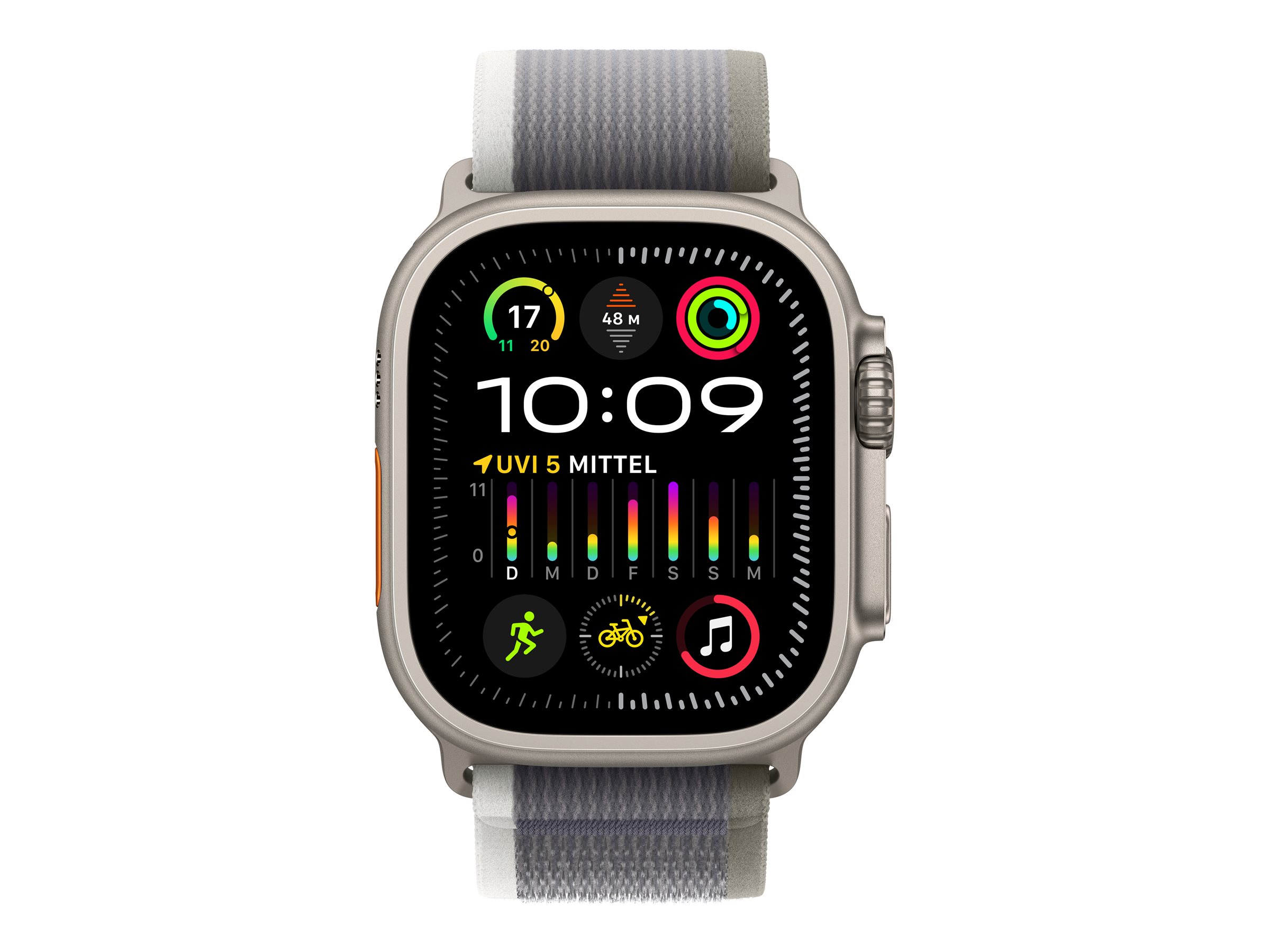 Apple Watch Ultra 2 - 49 mm - Titan - intelligente Uhr mit Trail Loop - Nylongewebe - grün/grau - Bandgröße: M/L - 64 GB - LTE, Wi-Fi, Bluetooth, UWB - 4G - 61.4 g