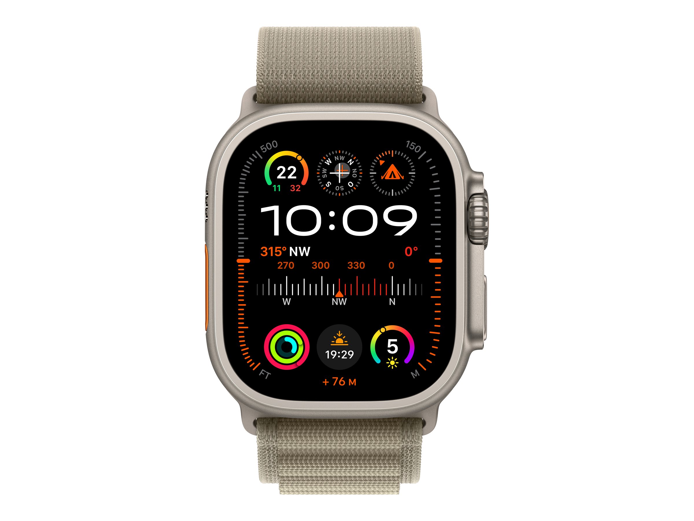 Apple Watch Ultra 2 - 49 mm - Titan - intelligente Uhr mit Alpine Loop - Stoff - Olive - Bandgröße: S - 64 GB - LTE, Wi-Fi, Bluetooth, UWB - 4G - 61.4 g