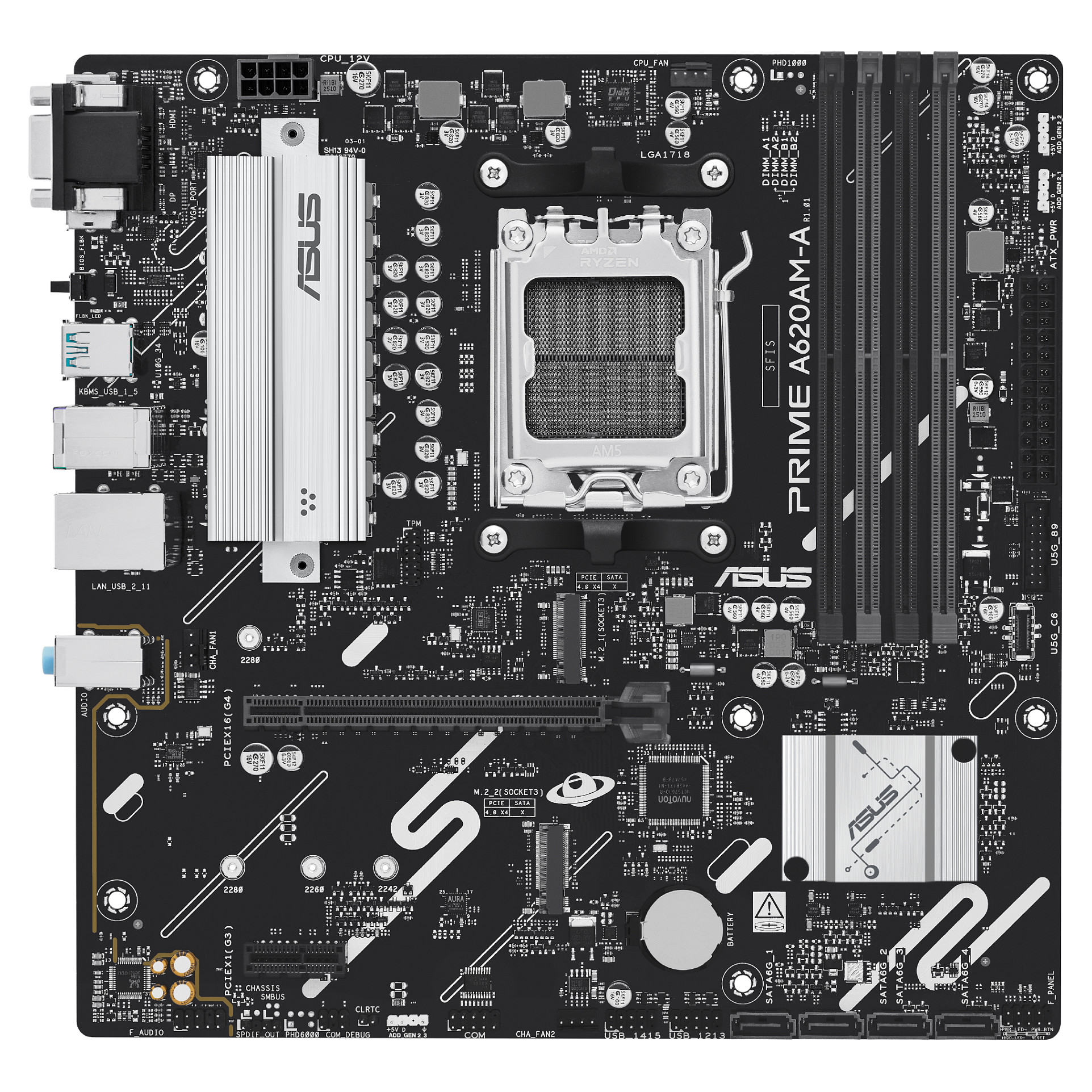ASUS PRIME A620AM-A-CSM - Motherboard - micro ATX - Socket AM5 - AMD A620A Chipsatz - USB-C 3.2 Gen 1, USB 3.2 Gen 1, USB 3.2 Gen 2 - Gigabit LAN - Onboard-Grafik (CPU erforderlich) - HD Audio (8-Kanal)