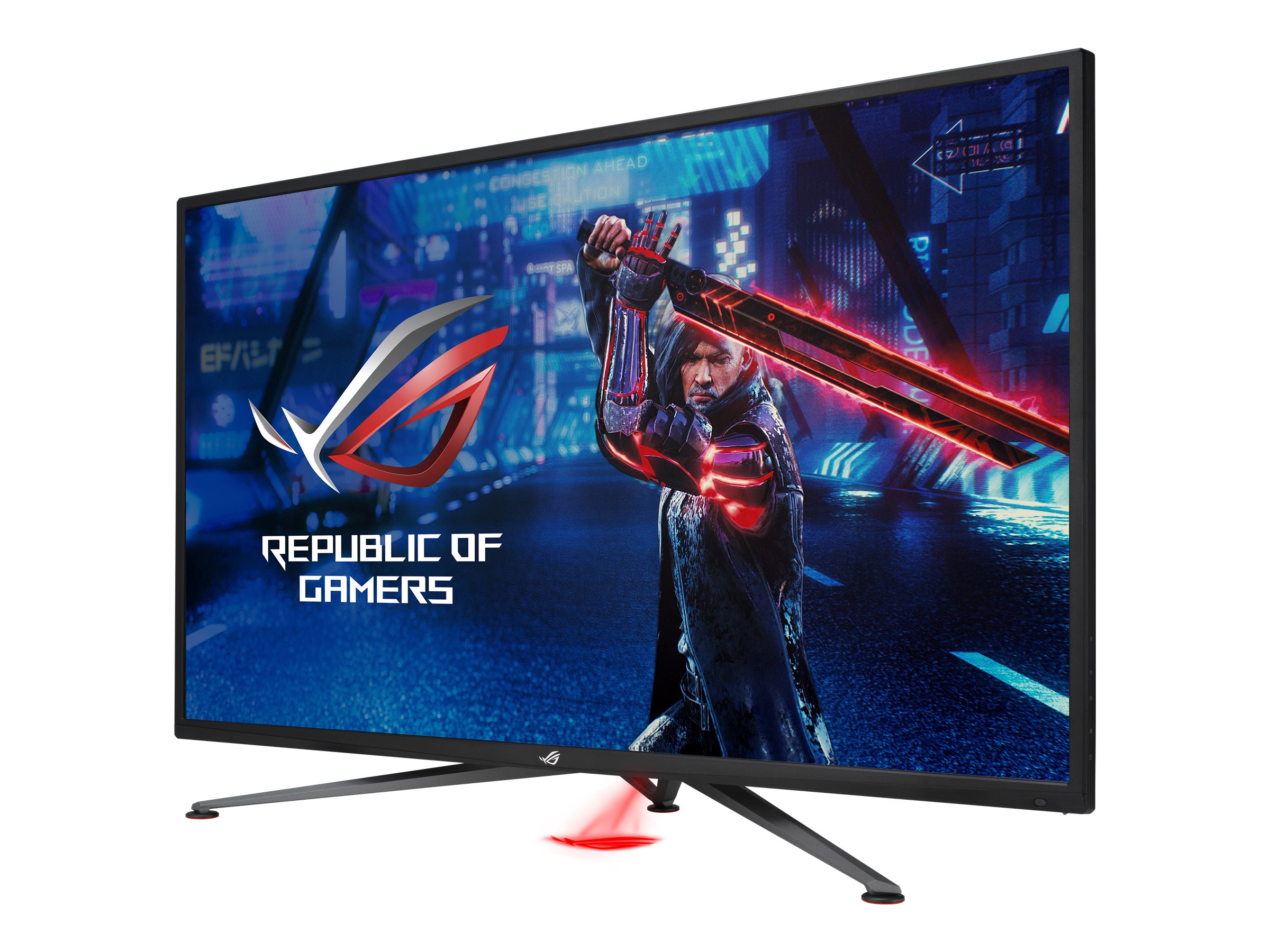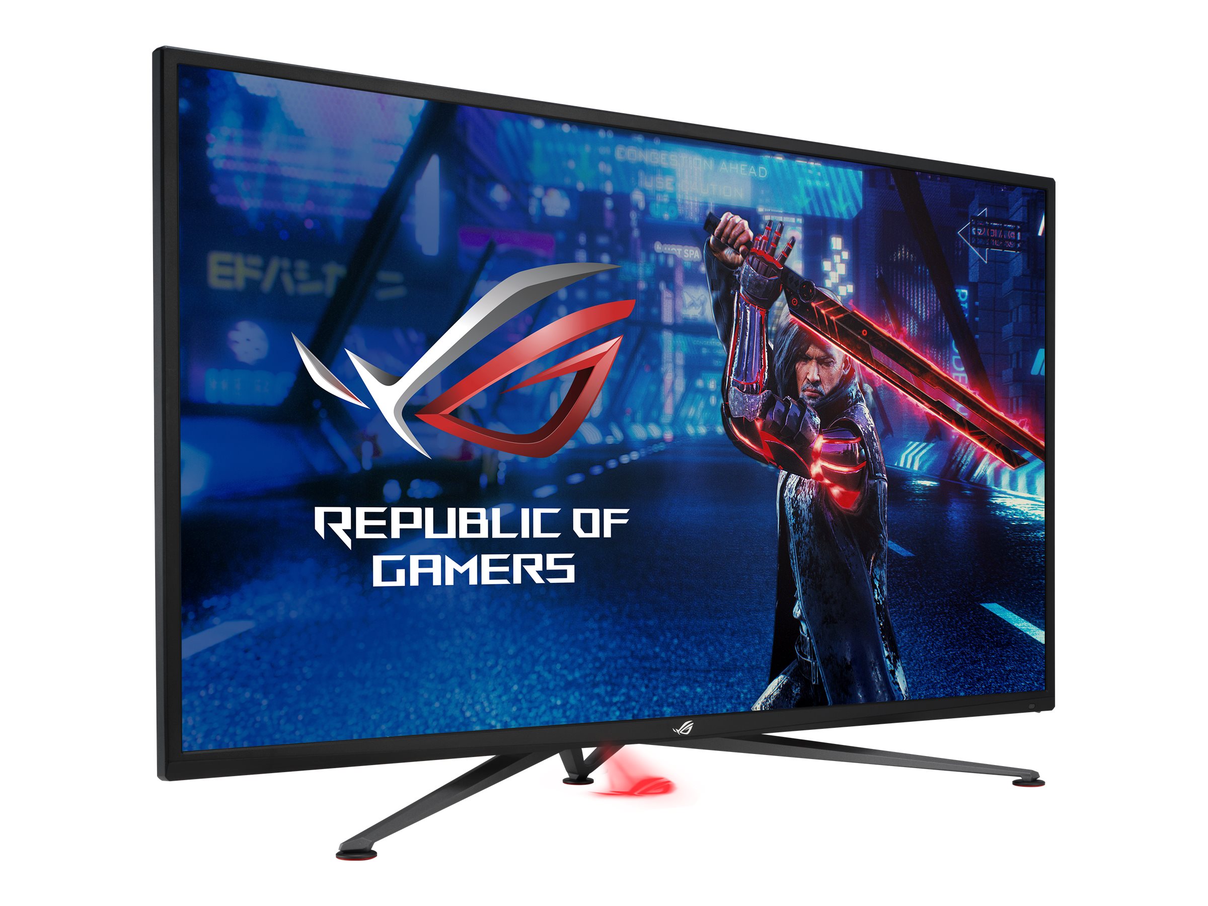 ASUS ROG Strix XG438QR. Bildschirmdiagonale: 109,2 cm (43"), Display-Auflösung: 3840 x 2160 Pixel, HD-Typ: 4K Ultra HD, Bildschirmtechnologie: LED, Reaktionszeit: 4 ms, Natives Seitenverhältnis: 16:9, Bildwinkel, horizontal: 178°, Bildwinkel, vertikal: 178°. Eingebaute Lautsprecher. Integrierter USB-Hub. VESA-Halterung. Produktfarbe: Schwarz