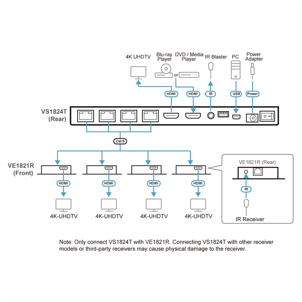 Weiterführende Links zu "ATEN VS1824KIT 4-Port 4K HDMI Cat6 Split 4 x Receiver 1 Transmitter - 4-Por VS1824KIT"