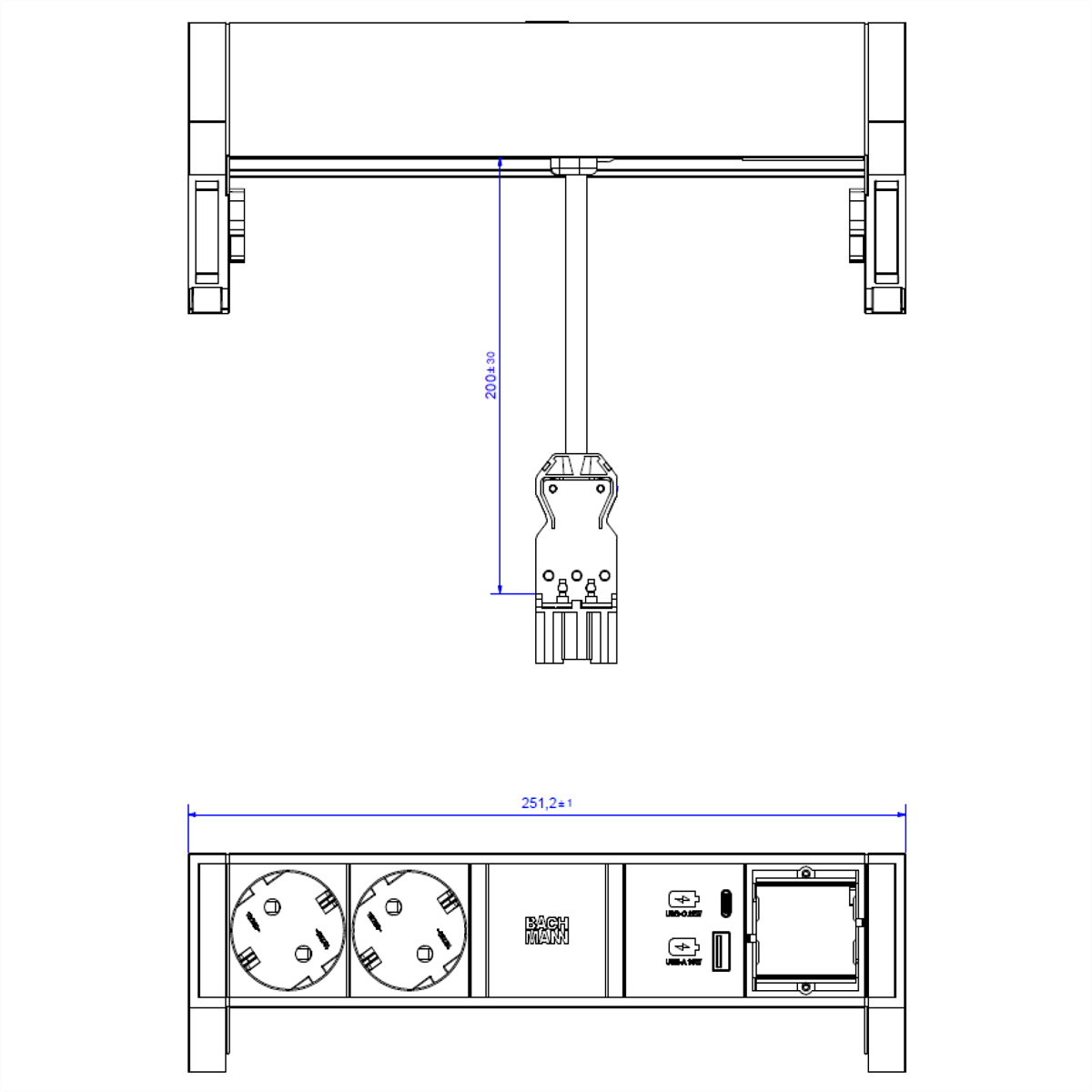 Weiterführende Links zu "BACHMANN DESK2 ALU BLACK 937.304 2xCEE7/3 1xCM 1xUSB A&C 22W 0,2m GST18 937.304"