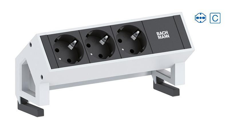 BACHMANN Steckdosenleiste DESK2 902.220 3xIT Italien 2 xAbd.GST18 0,2m RAL9 902.220