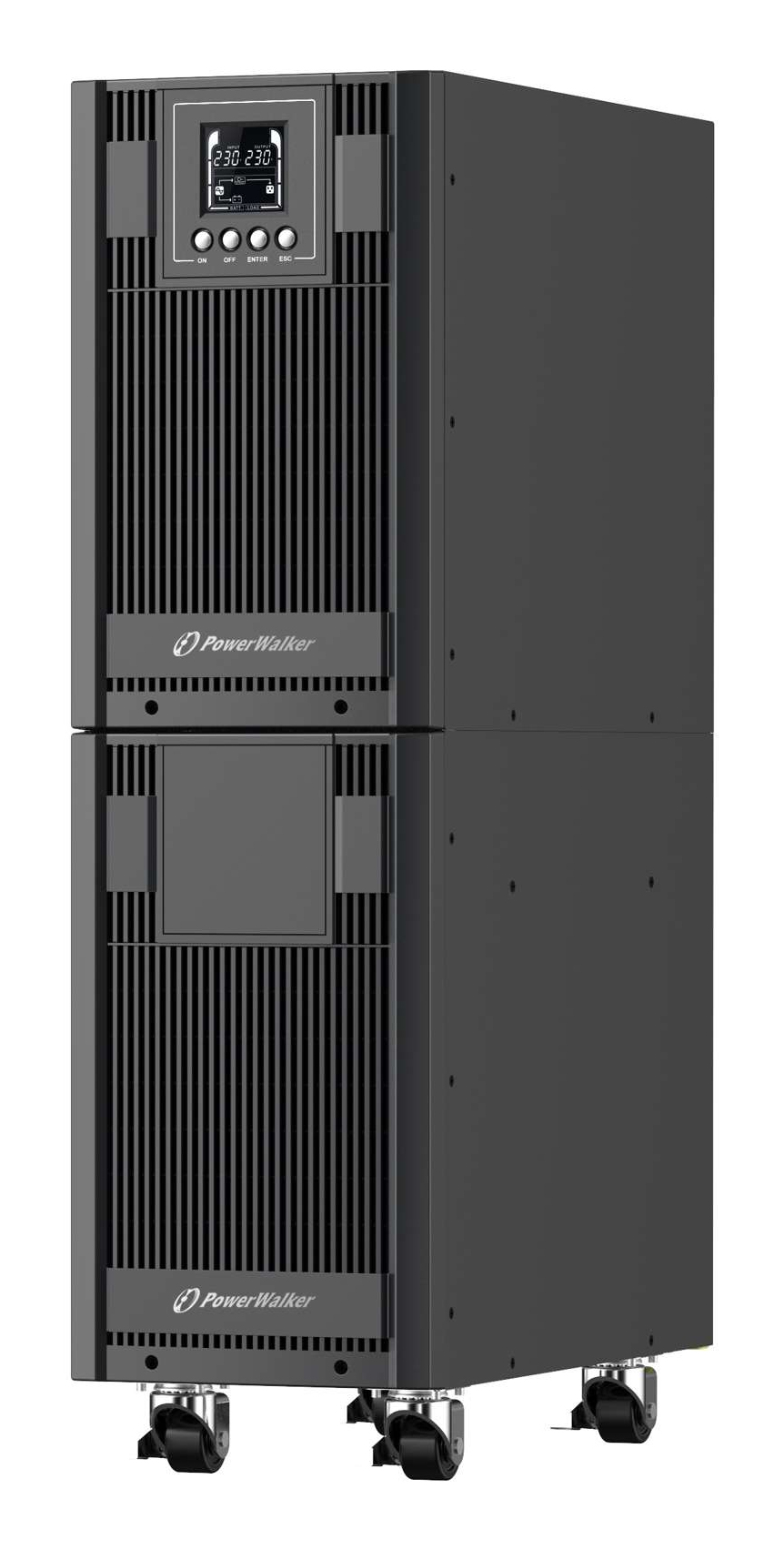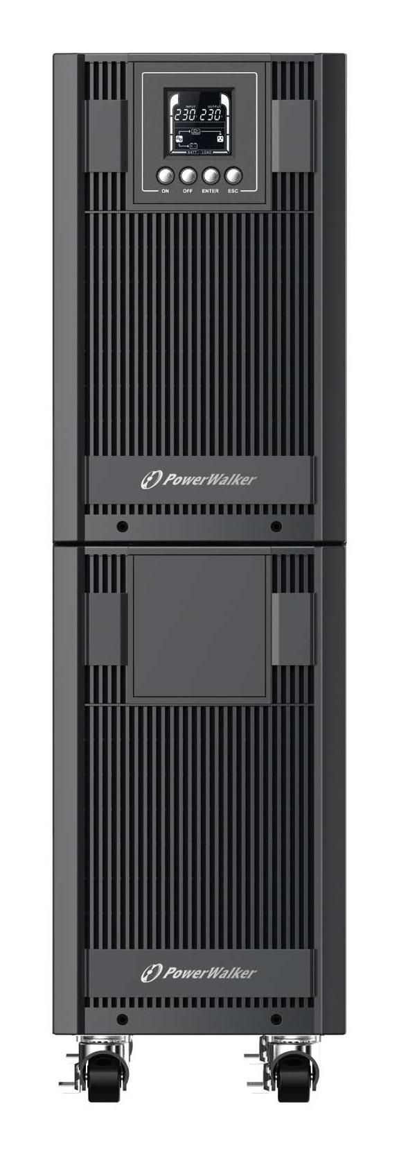 PowerWalker VFI 10000 AT. USV-Topologie: Doppelwandler (Online), Ausgangskapazität: 10 kVA, Ausgangsleistung: 9000 W. AC-Steckertypen: Terminal, Stecker: Terminal. Akku-/Batterietechnologie: Bleisäure, Batteriekapazität: 9 Ah, Akku-/Batteriespannung: 12 V. Formfaktor: Tower, Produktfarbe: Schwarz, Display-Typ: LCD. Breite: 196 mm, Tiefe: 412 mm, Höhe: 702 mm