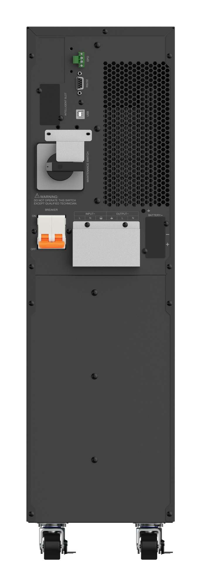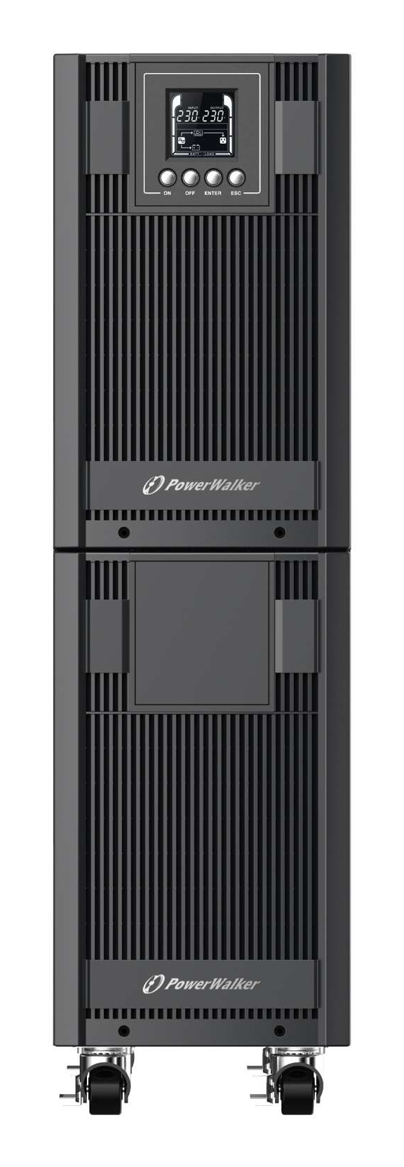 PowerWalker VFI 6000 AT. USV-Topologie: Doppelwandler (Online), Ausgangskapazität: 6 kVA, Ausgangsleistung: 5400 W. AC-Steckertypen: Terminal, Stecker: Terminal. Akku-/Batterietechnologie: Bleisäure, Batteriekapazität: 7 Ah, Akku-/Batteriespannung: 12 V. Formfaktor: Tower, Produktfarbe: Schwarz, Display-Typ: LCD. Breite: 196 mm, Tiefe: 412 mm, Höhe: 702 mm
