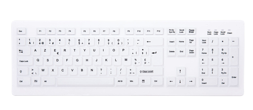 CHERRY AK-C8100F-FUS-W/BE. Tastatur-Stil: Gerade. Übertragungstechnik: Kabellos, Geräteschnittstelle: RF Wireless, Tastatur-Switch: Membran Key Switch, Tastaturaufbau: AZERTY, Tastatur - Tastenanzahl: 105, Empfohlene Nutzung: Medizinisch. Produktfarbe: Weiß