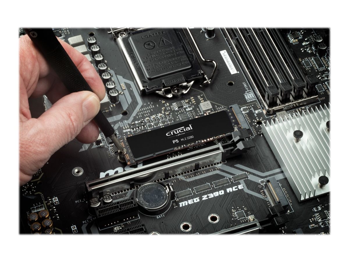 Crucial P5. SSD Speicherkapazität: 1 TB, SSD-Formfaktor: M.2, Lesegeschwindigkeit: 3400 MB/s, Schreibgeschwindigkeit: 3000 MB/s, Komponente für: PC/Laptop