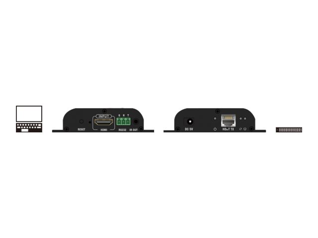 | Schnittstellen | 1 x HDMI (Eingang) - Type A ¦ 1 x HDbitT - RJ-45 weiblich ¦ 1 x seriell - 3-poliger Klemmenblock weiblich ¦ 1 x Audio - mini jack |