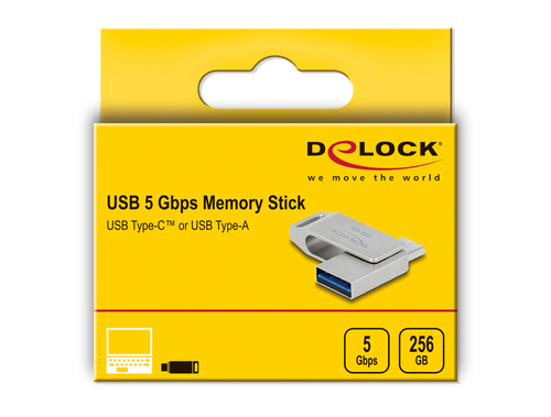 Weiterführende Links zu "DELOCK USB-Stick 5 Gbps USB-C + Typ-A 256 GB - Metallgehäuse 54008"