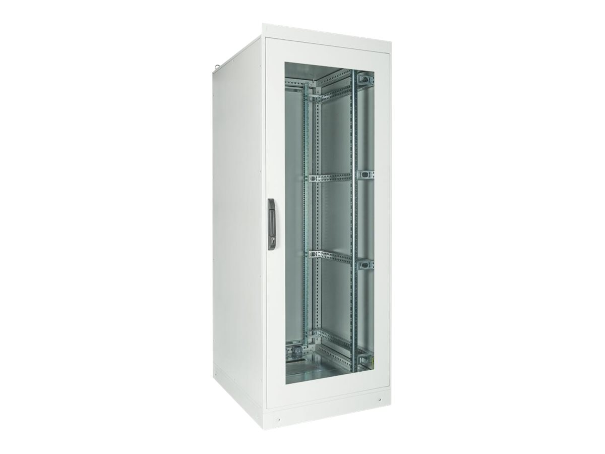 | Leistungsmerkmale | Abschließbare Fronttüre, Kabeleingänge unten, für Einsatz im Innenbereich, einstelbare Tiefenschienen, Fronttür aus gehärtetem Glas, korrosionsbeständig, IP55-Schutz, IK10 Wirkungsbewertung, Tür mit 130 Grad Scharnier |
