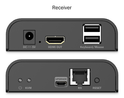 | Schnittstellen | 1 x HDMI-Eingang (Transmitter) - HDMI Typ A, 19-polig weiblich ¦ 1 x Netzwerk (Transmitter) - RJ-45 weiblich ¦ 1 x USB 2.0 (Transmitter) - Type A ¦ 1 x micro-USB (Transmitter) ¦ 1 x HDMI-Ausgang (Receiver) - HDMI Typ A, 19-polig weiblich ¦ 1 x Netzwerk (Receiver) - RJ-45 weiblich ¦ 2 x USB-Tastatur / USB-Maus / USB-Touchdisplay (Receiver) - Type A weiblich ¦ 1 x micro-USB (Receiver) |