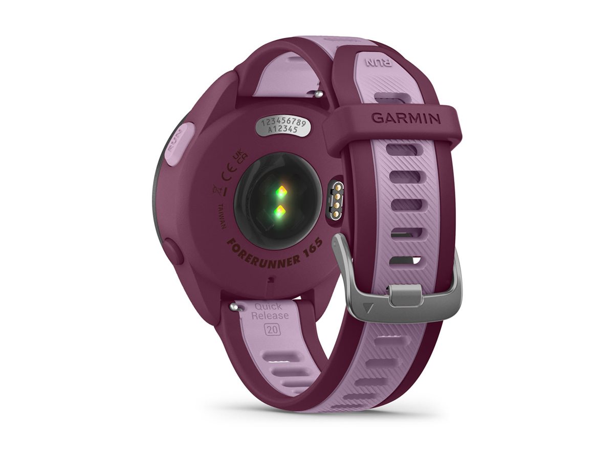 Garmin Forerunner 165 Music - Berry - Sportuhr mit Band - Silikon - Flieder - Handgelenkgröße: 126-203 mm - Anzeige 3 cm (1.2") - 4 GB - Bluetooth, ANT+ - 39 g