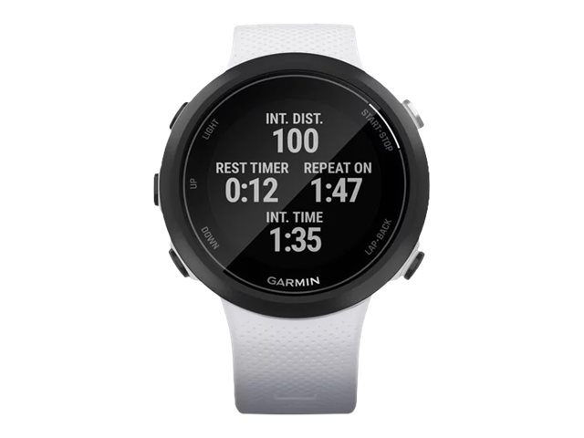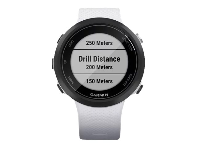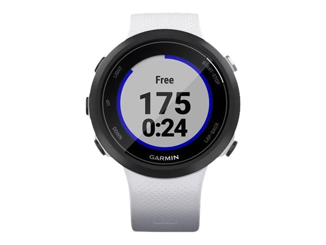 Garmin Swim 2. Bildschirmdiagonale: 2,64 cm (1.04"), Bildschirmtechnologie: MIP, Display-Auflösung: 208 x 208 Pixel. GPS. Gewicht: 36 g. Bandmaterial: Silikon, Armbandfarbe: Weiß