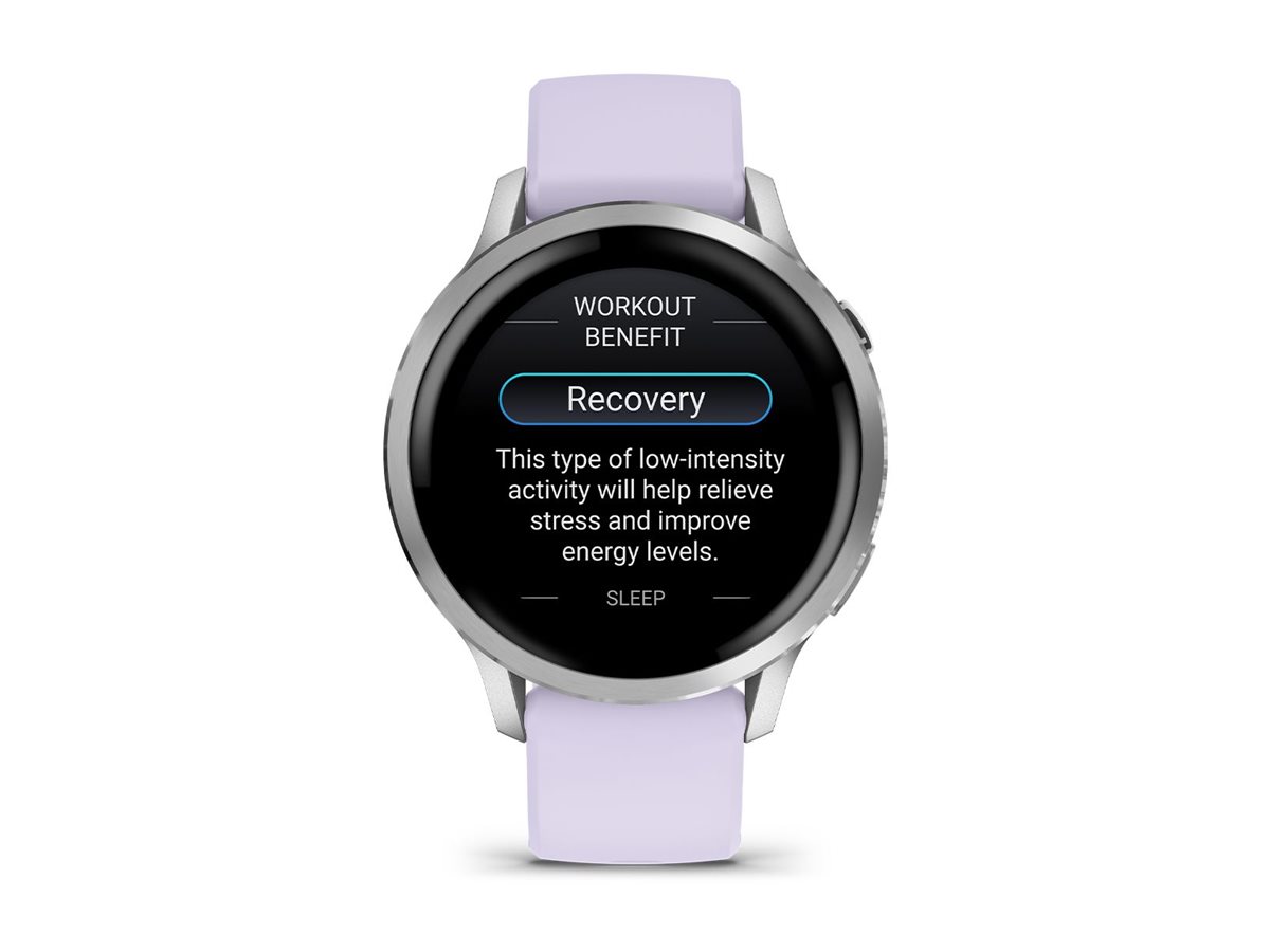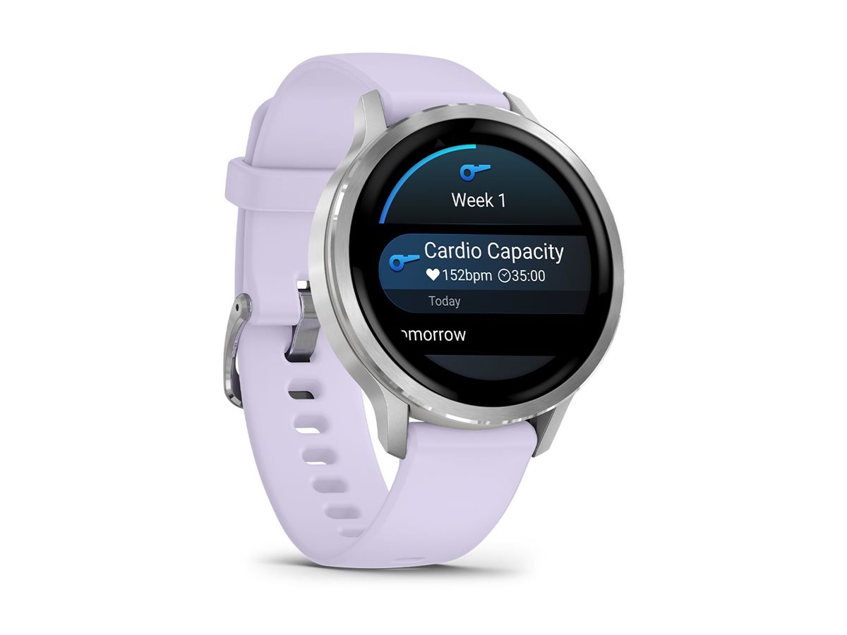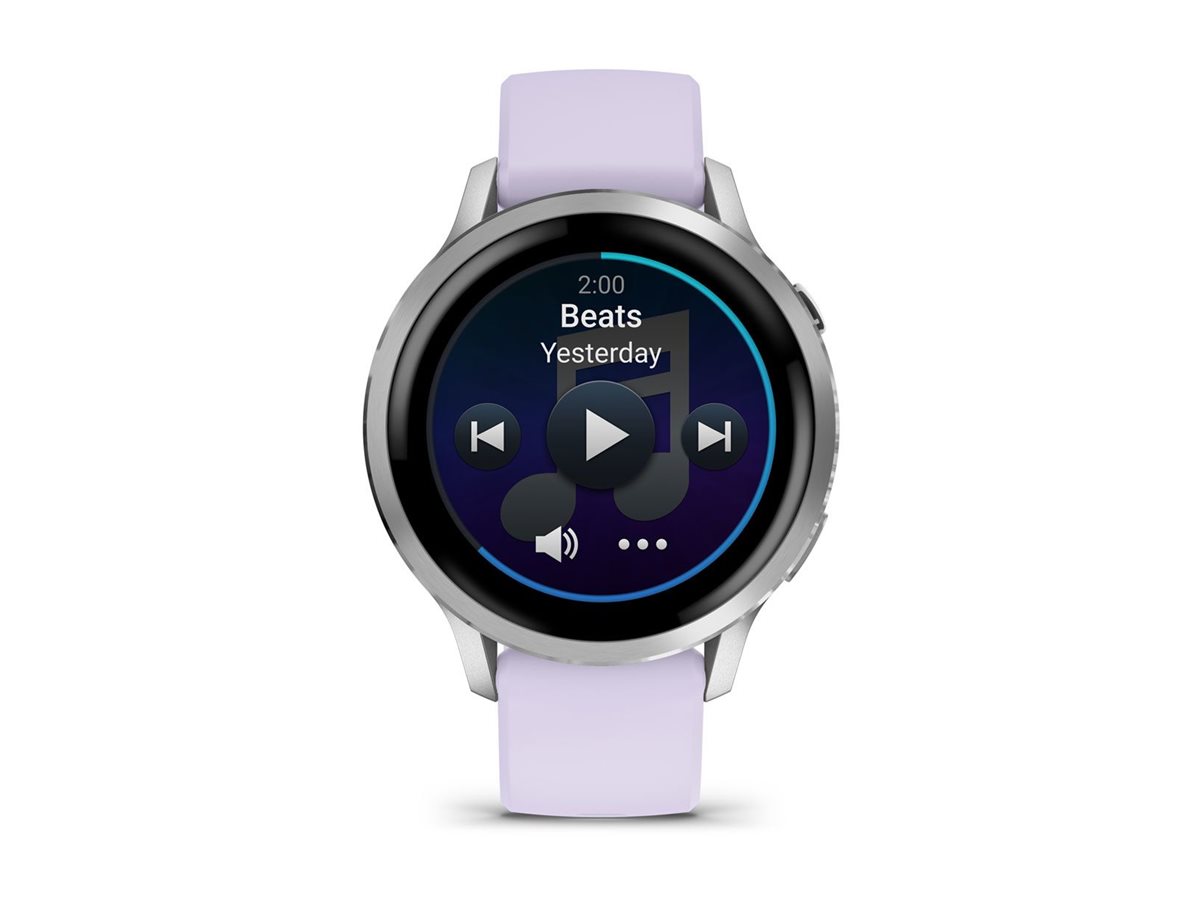 Garmin Venu 4 - 41 mm - silber - intelligente Uhr mit Band - Silikon - Periwinkle - Handgelenkgröße: 110-175 mm - Anzeige 3.04 cm (1.2") - 8 GB - Bluetooth, ANT+, Wi-Fi - 33 g