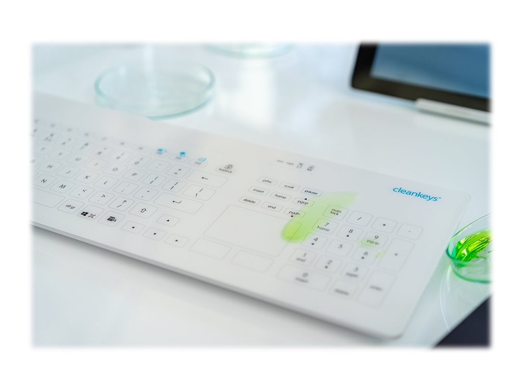 Die Wireless- Glastastatur der Marke Cleankeys, kurz CK4W, besticht durch edles Design, komfortables Tastgefühl und einfache Reinigung sowie Desinfektion. Cleankeys steht für funktionelle Design-Tastaturen mit einer Touchoberfläche aus Glas. Ausgereifte Highend-Features sind neben dem Design die Merkmale der Tastaturen, die ein Must-Have für jedes hochwertige und hygiene-sensible Umfeld sind. In anspruchsvollen Laboren, Fachpraxen, Krankenhäusern, kosmetischen Einrichtungen, Designbüros und Privathaushalten genießen Cleankeys-Produkte hohes Renommee.