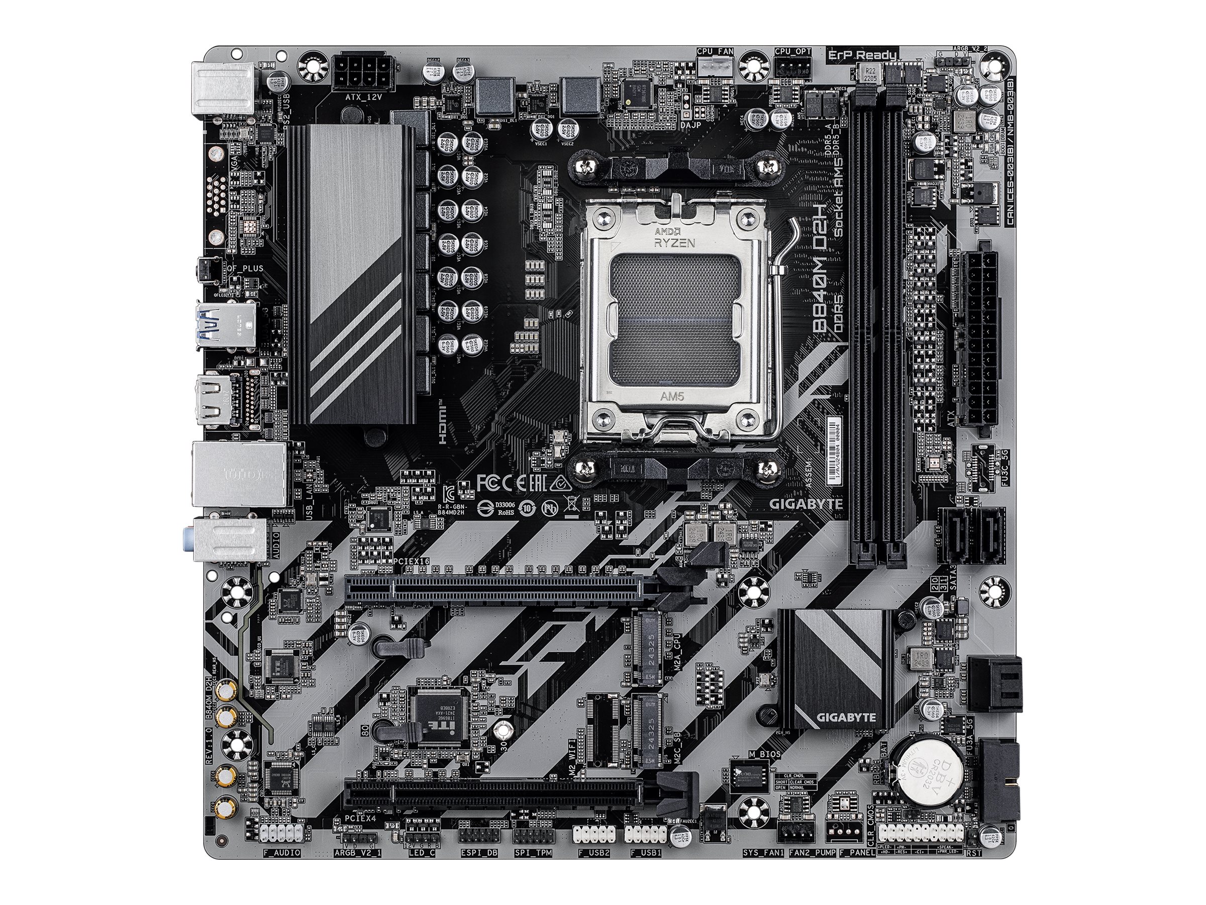 Gigabyte B840M D2H - Motherboard - micro ATX - Socket AM5 - AMD B840 Chipsatz - USB 3.2 Gen 1 - 2.5 Gigabit LAN - Onboard-Grafik (CPU erforderlich) - HD Audio (8-Kanal)