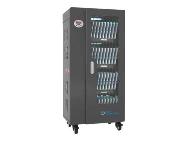 Mit dem innovativen Tablet-Ladewagen begleitet Sie Good Connections auf den Weg der Digitalisierung und sorgt dafür, dass ihre Geräte immer einsatzbereit und geladen sind, wenn sie gebraucht werden. Sichere Aufbewahrung und energieeffiziente sowie ressourcenschonende Ladetechnik ? durch seine Flexibilität und Vielseitigkeit ist der UL-zertifizierte Tablet-Ladewagen von Good Connections der ideale Begleiter für Ihr Projekt im Bildungswesen, Gesundheitswesen, Industrie, Tagungsstätten, Hotels und der Gastronomie. Machen Sie sich keine Gedanken mehr darüber ob Sie das passende Ladegerät für ihr Tablet zur Hand haben, denn durch die USB-Ports mit intelligenter IC-Ladesteuerung benötigen Sie nur noch eine Standard-Steckdose für bis zu 65 Tablets. Eine in jeder Ladeebene angebrachte UV-C Lampe sorgt umweltfreundlich und ohne Chemie für sterilere Verhältnisse und eine verbesserte Hygiene. Die ausziehbaren und nummerierten Fächer dienen der einfachen Zuordnung der Geräte zu den einzelnen Nutzern.