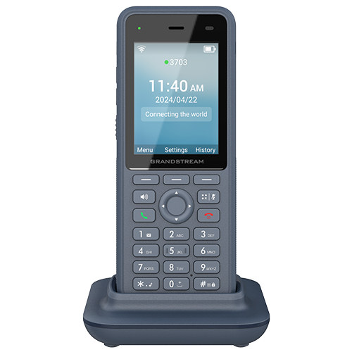 Grandstream Networks WP836. Produkttyp: IP-Telefon, Produktfarbe: Blau, Hörertyp: Kabelloses Mobilteil. Linienanzahl: 3 Zeilen, Telefonbuch Kapazität: 1000 Eintragungen. Lautstärkeregler: Tasten. Display: LCD, Bildschirmdiagonale: 7,11 cm (2.8"), Display-Auflösung: 240 x 320 Pixel. WLAN-Standards: 802.11a, 802.11b, 802.11g, Wi-Fi 4 (802.11n), Wi-Fi 5 (802.11ac), Unterstützte Sicherheitsalgorithmen: 256-bit AES, 802.1x RADIUS, MD5, SRTP, TLS