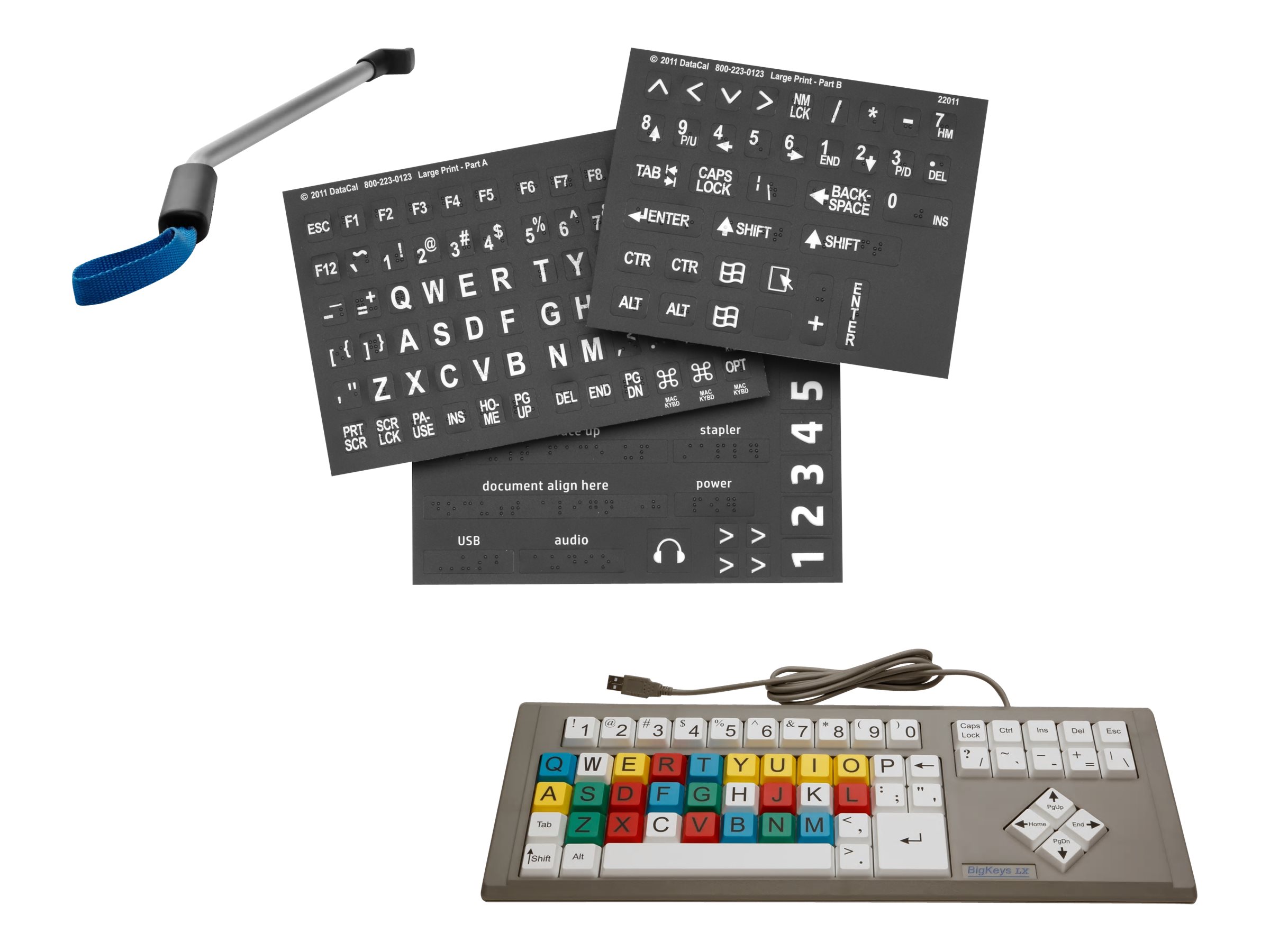 | Packungsinhalt | Klebeetiketten mit tastbarer Brailleschrift, Zugangsgriff, BigKeys LX Tastatur |