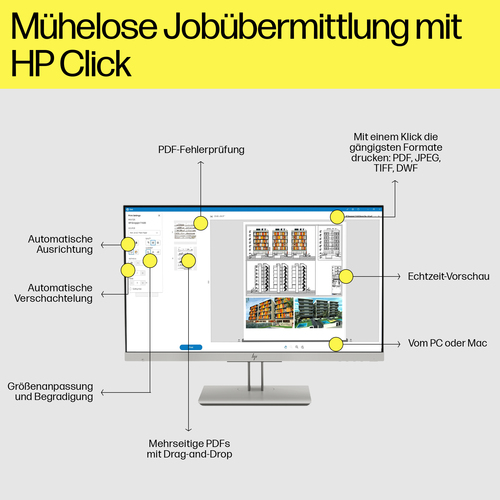 | Mitgelieferte Software | Unterstützt werden HP Click App, HP mobile, ePrint und iOS/Android plus HP App für Mobilgeräte, HP Web Jetadmin, HP JetAdvantage Security Manager, HP SmartTracker (optional), HP Click-Treiber für Windows 11 |