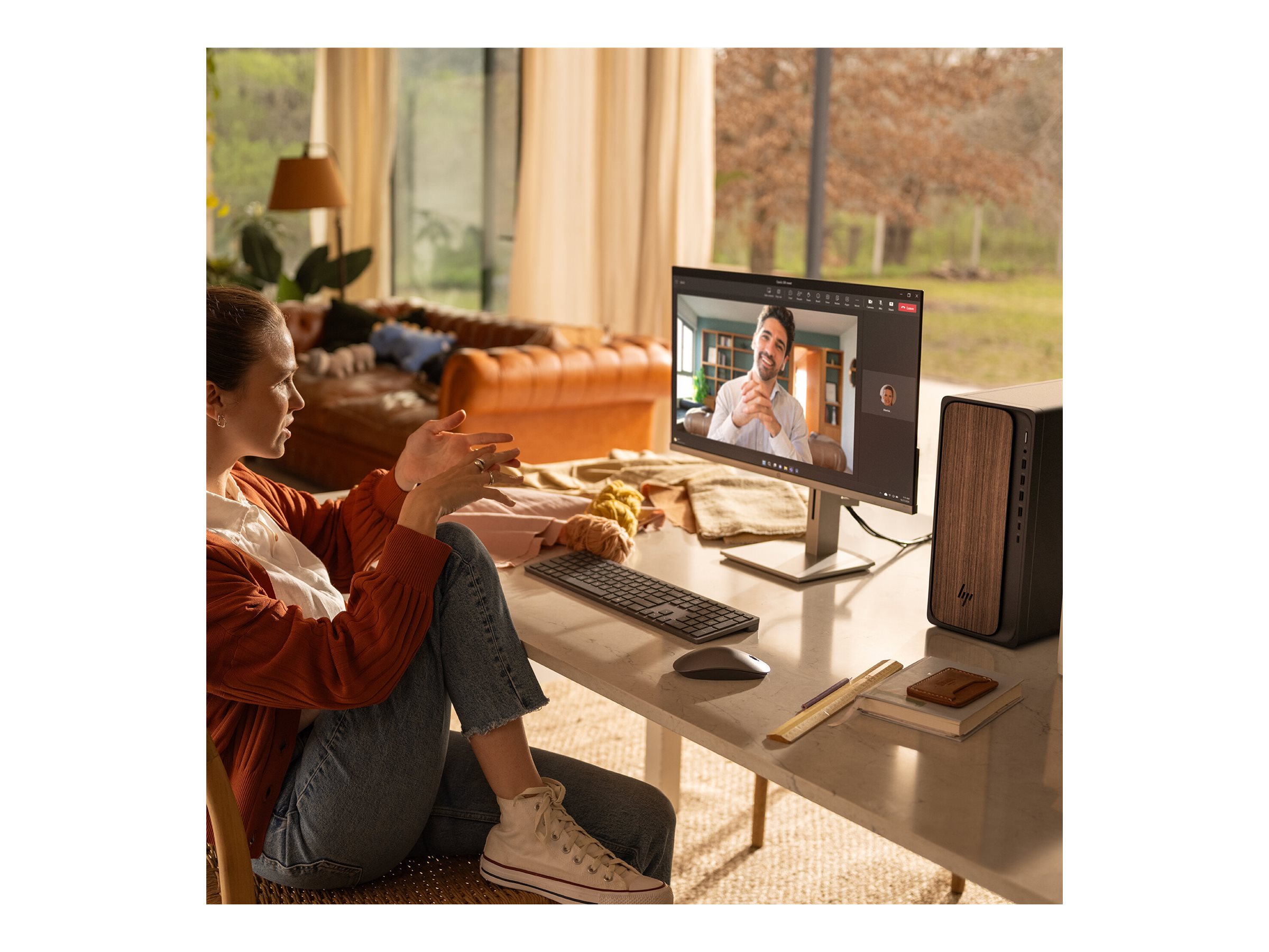 HP OmniDesk AI M03-0475ng - Angepasst - Core Ultra 7 265 / 2.4 GHz - RAM 16 GB - SSD 1 TB - NVMe - Intel Graphics - 1GbE, Wi-Fi 6, Bluetooth - WLAN: 802.11a/b/g/n/ac/ax, Bluetooth 5.4 - Win 11 Home - Monitor: keiner - Tastatur: Deutsch - dunkles Holz, schwarz gemäß Gehäuse