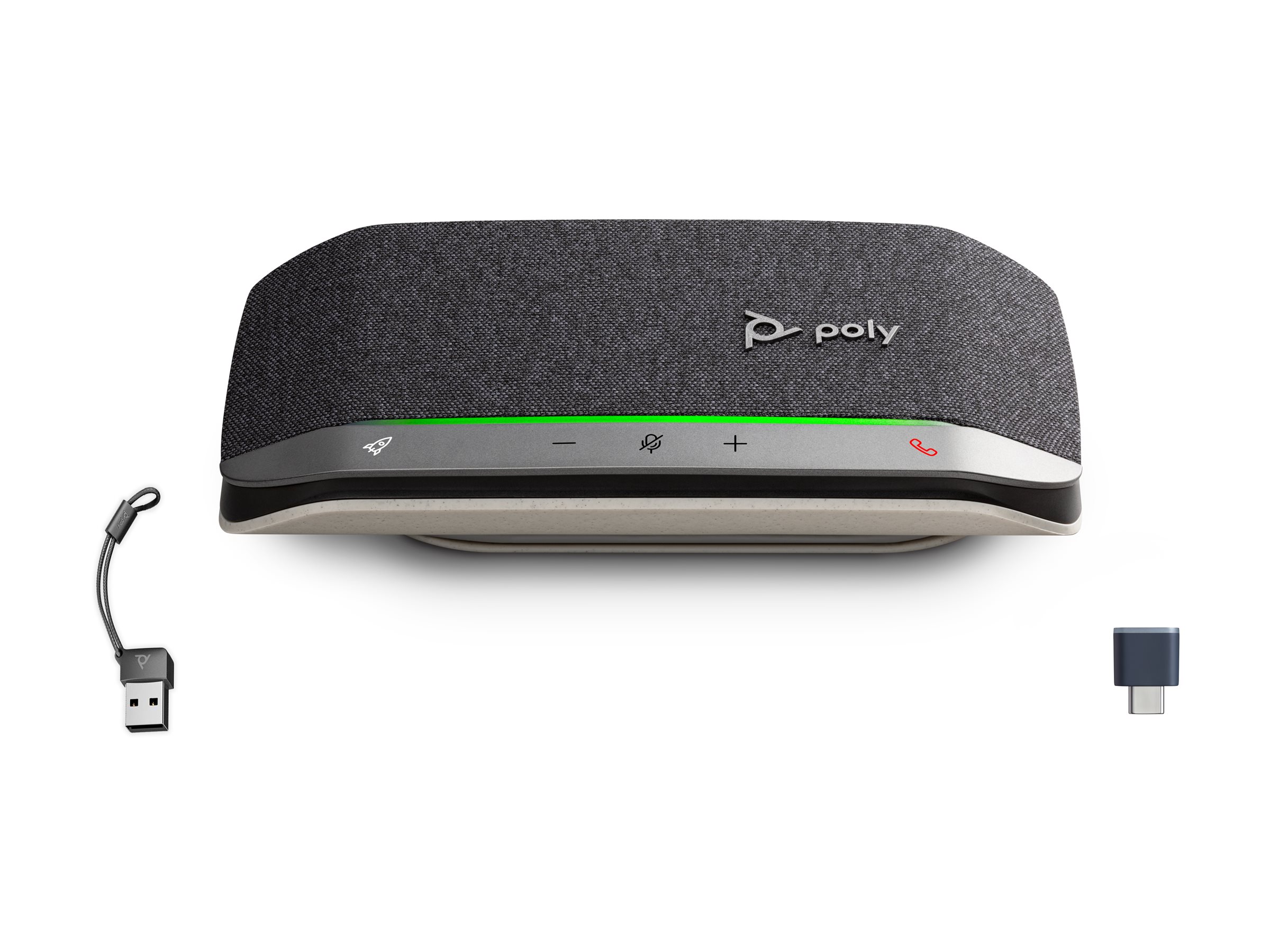Mit der intelligenten Freisprecheinrichtung Poly Sync 20 USB/Bluetooth klingen Sie wie ein Profi, der Sie auch sind ? für Konferenzgespräche und Musik an jedem beliebigen Arbeitsplatz. Mit bis zu 20 Stunden Sprechzeit können Sie das Gerät überallhin mitnehmen.