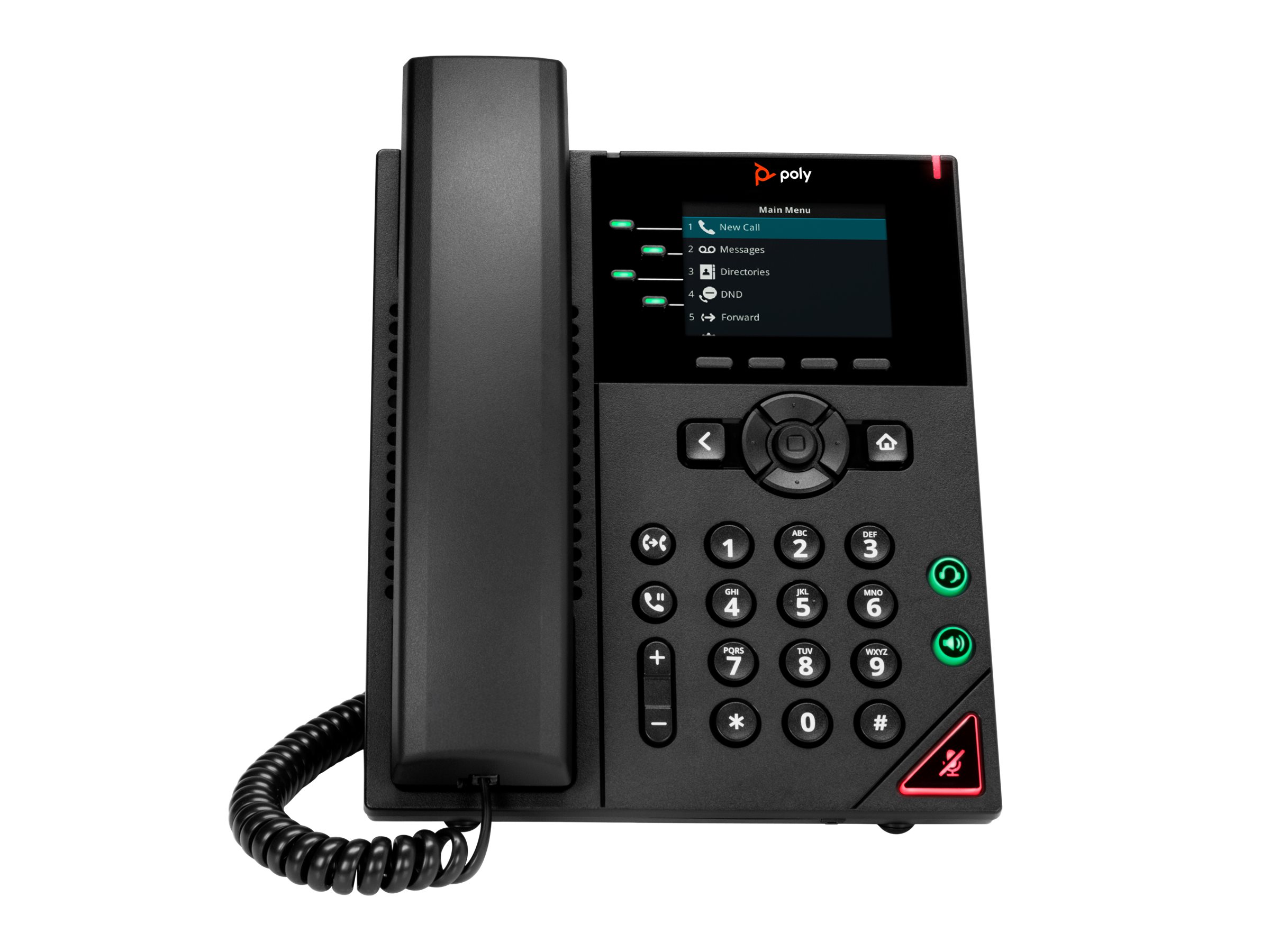 Produkttyp: VoIP-Telefon,Transportgewicht: 890 g,Gehäusefarbe: Schwarz,Schutz: Microban antimikrobielle Schutz,VoIP-Dienste: Zoom, OpenSIP,Anrufservices: Anklopfen, Rufweiterleitung, Halten, Rufumleitung, Anrufparkplatz/-abholung,Position des Wählers: Telefon,Konferenzfähig: Dreiweg,Freisprecheinrichtung: Ja,Lautstärkeregelung: Ja,Anzeigen: Busy lamp field (BLF),Zusätzliche Funktionen: Call Timer, Verbundenes Parteien-ID, Do Not Disturb (DND), Eintasten-Schnellwahl / Rückruf, Shared Call Appearance (SCA), Bridged Line Appearance (BLA),Hauptmerkmale: Integrierter Ethernet-Switch, Unterstützung zahlreicher VoIP-Protokolle,VoIP: Ja,VoIP-Protokolle: SRTP, SIP, SDP, RTP,Voice Codecs: G.711a, G.711µ, G.722, G.729ab, iLBC, Opus,Unterstützte Leitungen: 4 Leitungen,IP-Adressenzuweisung: DHCP, statisch,Sicherheit: IEEE 802.1X, EAPoL, SRTP, TLS, 256 Bit AES,Power Over Ethernet (PoE)-Unterstützung: Ja,Netzwerkprotokolle: HTTPS, SRTP, RTP,Anz. Netzwerkanschlüsse: 2 x Ethernet 10Base-T/100Base-TX/1000Base-T,Kompatible Software: Zoom, RingCentral, OpenSIP,Sprachfunktionen: Poly HD Voice-Technologie, Poly Acoustic Clarity-Technologie, Acoustic Echo Cancellation (AEC), Hintergrundgeräuschunterdrückung, Poly Acoustic Fence-Technologie, Voice Activity Detection (VAD), Comfort Noise Generation (CNG), Dual-Tone-Multi-Frequency (DTMF), adaptive jitter buffer (AJB), Audio-Paketübertragung mit niedriger Verzögerung,Netzwerkmerkmale: Poly LENS Cloud Management, Poly Zero Touch Bereitstellung, Polycom-Gerätemanagementdienst für Dienstanbieter (PDMS-SP), Class 2 PoE, Bis zu 16 SIP-Konten, Lightweight Directory Access Protocol (LDAP),Typ: LCD-Anzeige - Farbe,Anzeigestelle: Telefon,Diagonalabmessung: 7.1 cm (2.8"),Bildschirmauflösung: 320 x 240 Pixel,Verbindungen: Headsetstecker / RJ-9 ¦ USB / USB Typ A, 4-polig ¦ EHS port ¦ 2 x Netzwerk / RJ-45,Hörgerät-kompatibel: Ja,Platzierung/Befestigung: Auf dem Tisch,Enthaltene Kabel: Netzwerkkabel,Zubehör im Lieferumfang: Aufstellung,ENERGY STAR zertifiziert: Ja,Stromverbrauch: 4.5 W (PoE),Transportbreite: 23.5 cm,Transporttiefe: 23.3 cm,Transporthöhe: 5.6 cm,Transportgewicht: 890 g,Service und Support: Begrenzte Garantie - 1 Jahr