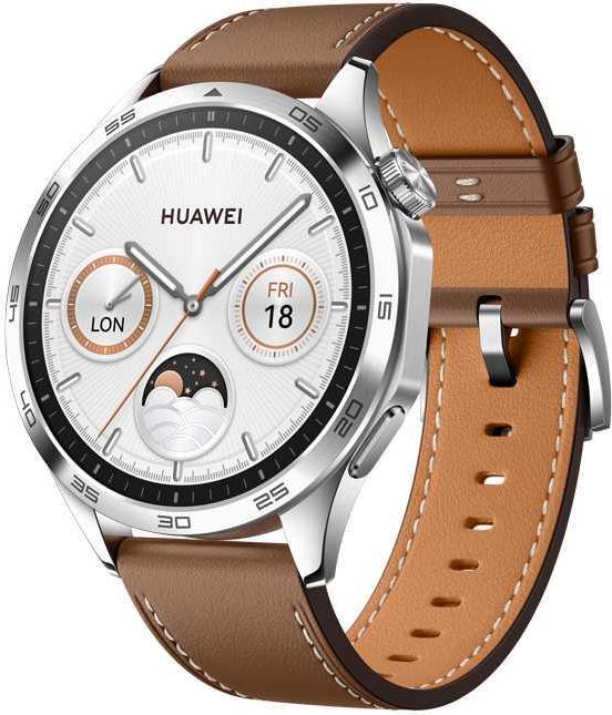 Huawei WATCH 4. Bildschirmdiagonale: 3,63 cm (1.43"), Bildschirmtechnologie: AMOLED, Display-Auflösung: 466 x 466 Pixel, Touchscreen. GPS. Gewicht: 48 g. Wasserdicht bis: 50 m, Bandmaterial: Leder, Armbandfarbe: Braun, Bandgröße: Universalgröße