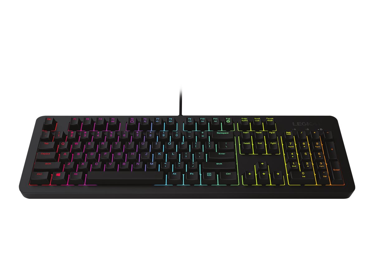 Lenovo Legion K300 RGB. Tastatur Formfaktor: Volle Größe (100%). Tastatur-Stil: Gerade. Übertragungstechnik: Kabelgebunden, Geräteschnittstelle: USB, Tastatur-Switch: Membran Key Switch, Tastaturaufbau: QWERTZ. Typ der Hintergrundbeleuchtung: RGB-LED. Kabellänge: 1,8 m. Empfohlene Nutzung: Gaming. Produktfarbe: Schwarz