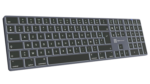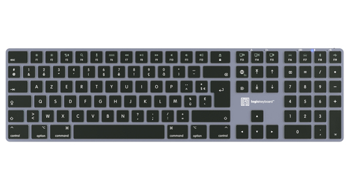 Logickeyboard Titan FR Mac, Volle Größe (100%), Verkabelt & Kabellos, USB + Bluetooth, Scherenschalter, AZERTY, Titan