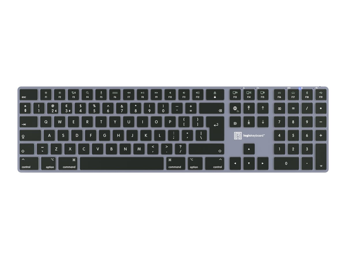 LogicKeyboard TITAN - Tastatur - Mac - hintergrundbeleuchtet - kabellos - USB, Bluetooth 5.1 - QWERTY - GB - Titanium Gray
