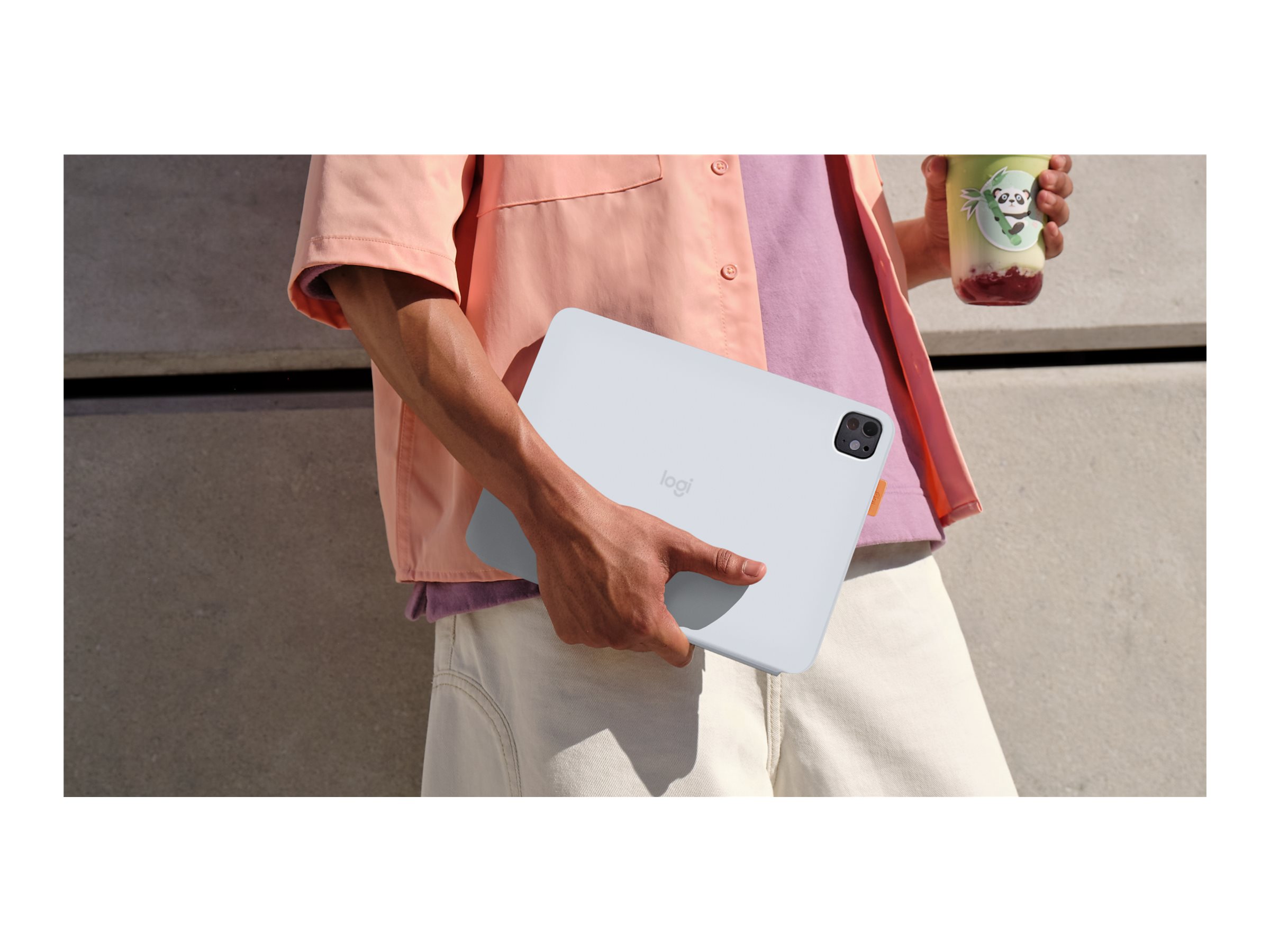 Logitech Flip Folio - Tastatur und Foliohülle - full size - kabellos - Bluetooth 5.1 LE - QWERTZ - Deutsch - Pale Gray - für Apple 10.9-inch iPad Air (5th generation); 11-inch iPad Air (M2, M3); 11-inch iPad Pro (M4, M5)