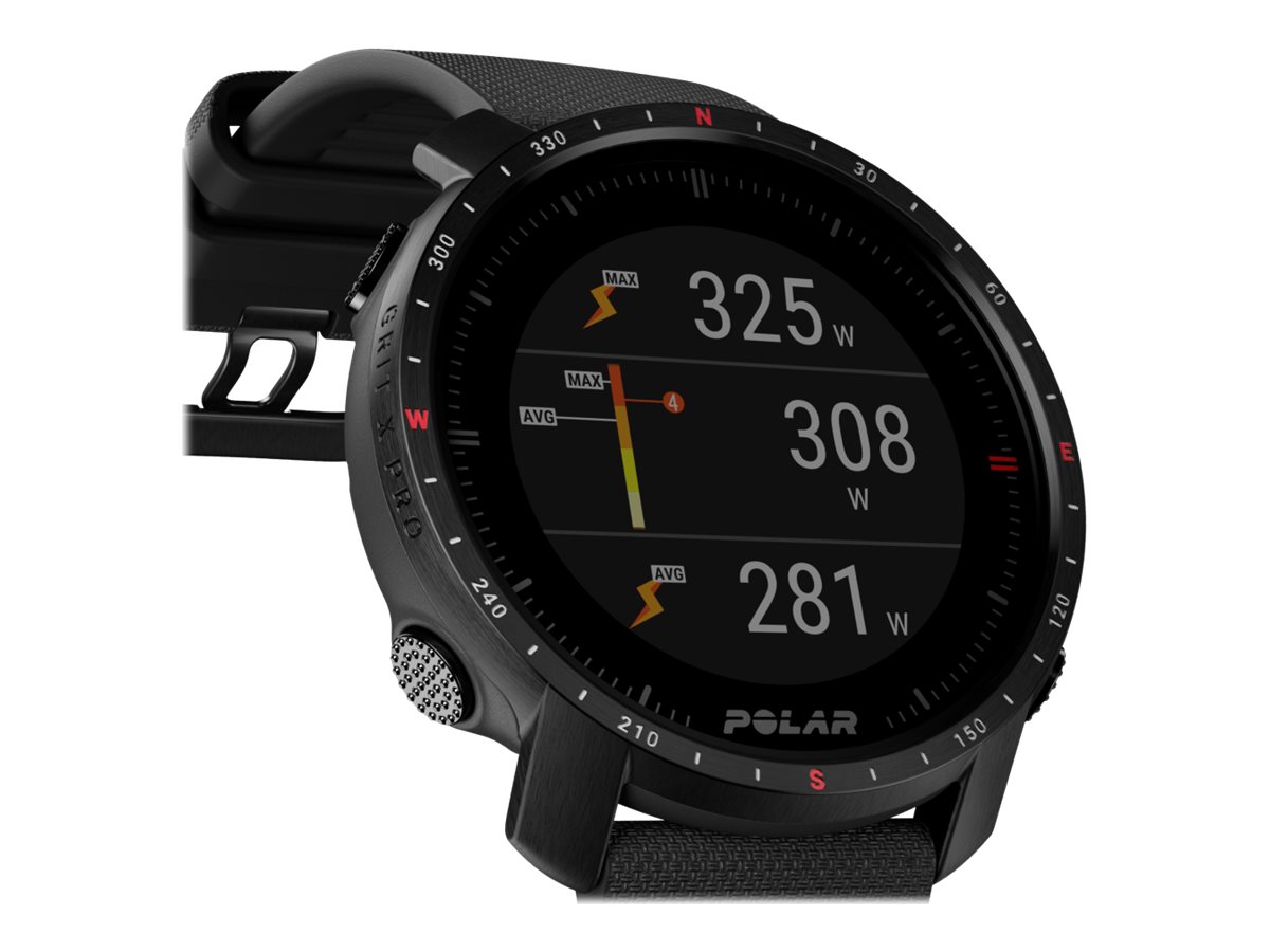 Polar Grit X Pro - Schwarz DLC - Sportuhr mit Band - Fluorkautschuk (FKM) - schwarz - Bandgröße: M/L - Anzeige 3 cm (1.2") - Bluetooth - 47 g