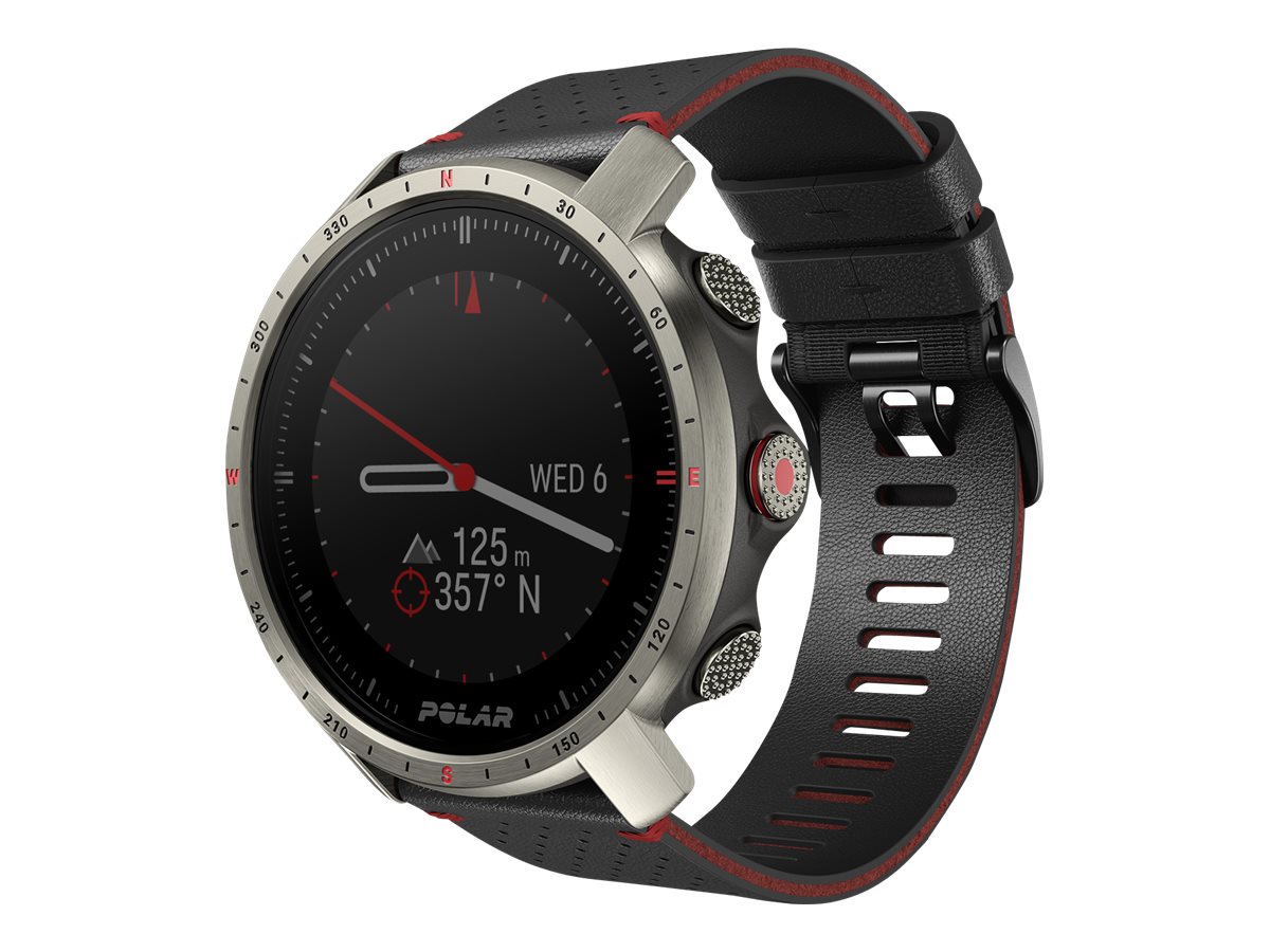 Polar Grit X Pro - Titan - Sportuhr mit Band - perforiertes Leder - grau - Bandgröße: M/L - Anzeige 3 cm (1.2") - Bluetooth - 41 g