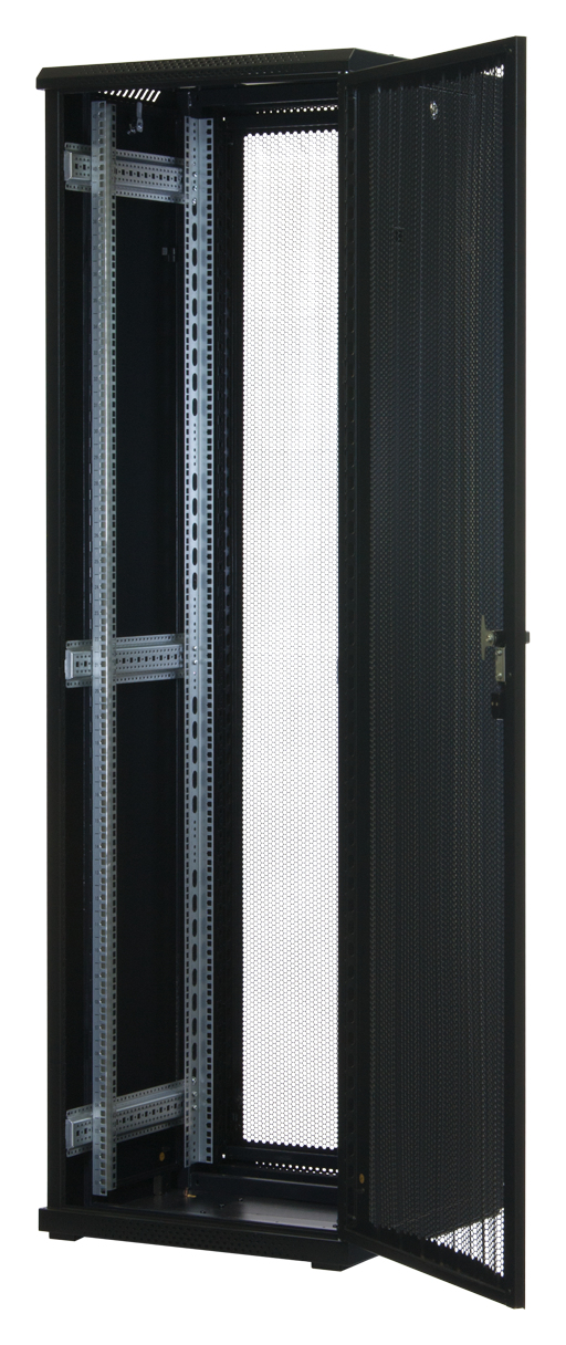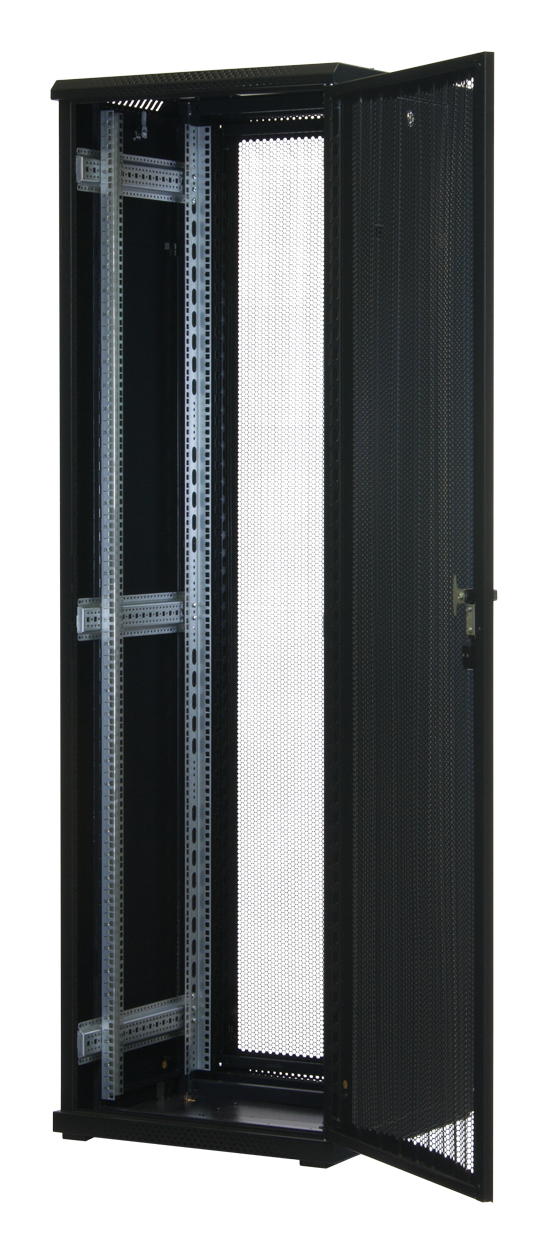 Rockstable 42 HE 19" Serverschrank mit Gitternetztüren. Typ: Freistehendes Gestell, Rack-Kapazität: 42U, Höchstgewichtskapazität: 800 kg, Sperrschloss, Verstellbare Füße, Ablageschienen, Internationale Schutzart (IP-Code): IP20, Lenkrollen, Produktfarbe: Schwarz
