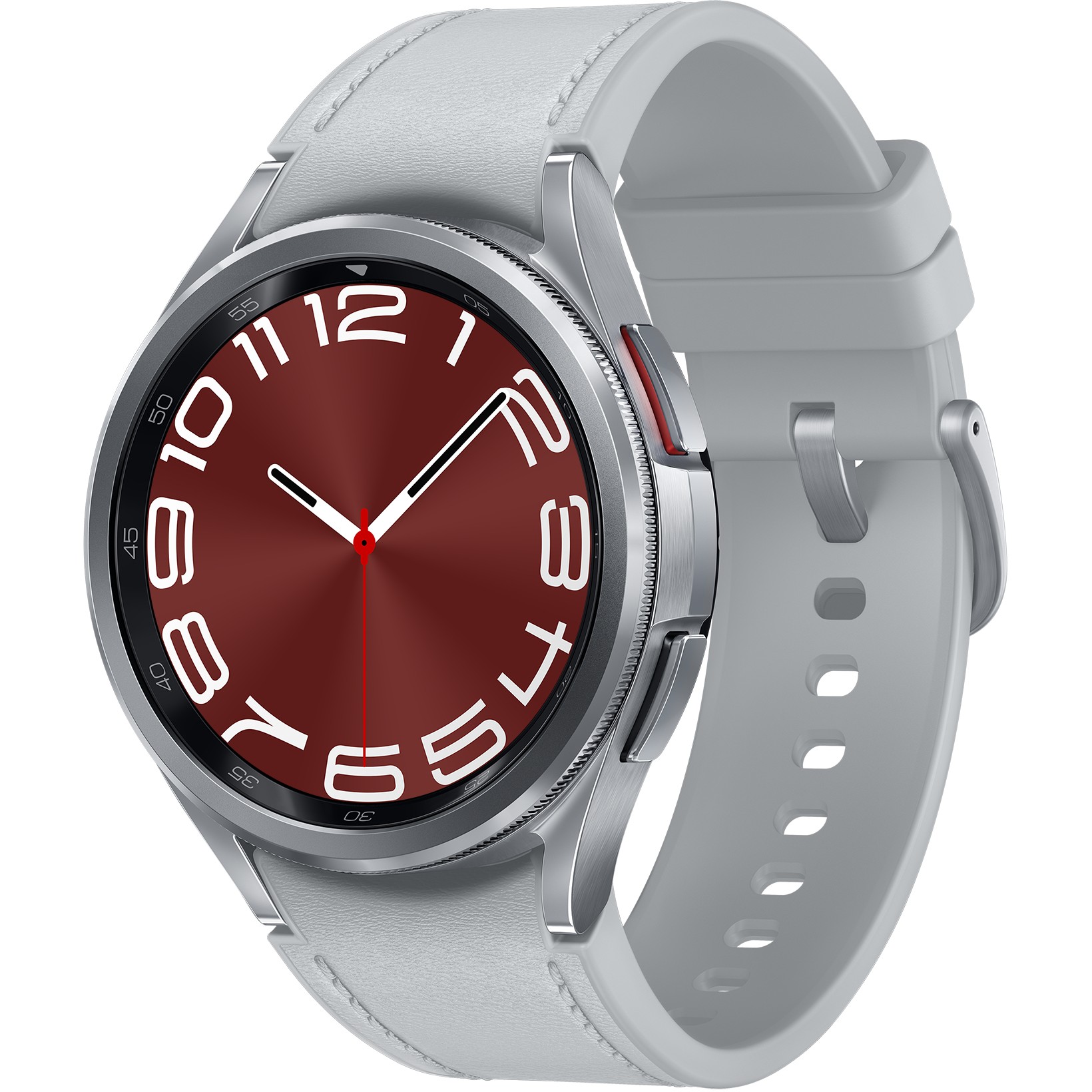 Samsung Galaxy Watch6 Classic - 43 mm - intelligente Uhr mit Band - Hybrid-Eco-Leder - Silber - Bandgröße: S/M - Anzeige 3.33 cm (1.3") - 16 GB - NFC, Wi-Fi, Bluetooth - 52 g - Silber