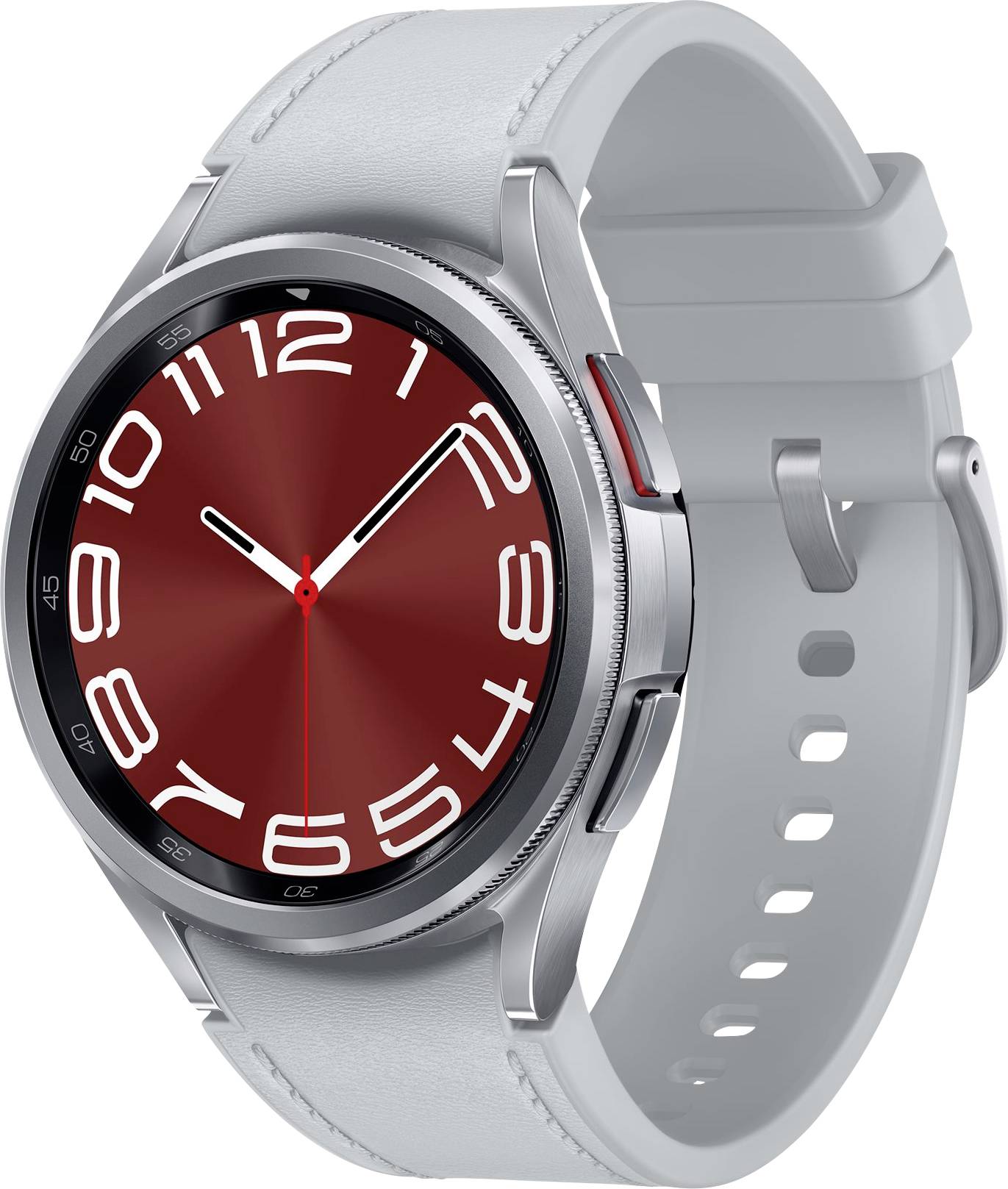 Samsung Galaxy Watch6 Classic - 43 mm - intelligente Uhr mit Band - Hybrid-Eco-Leder - Silber - Bandgröße: S/M - Anzeige 3.33 cm (1.3") - 16 GB - LTE, NFC, Wi-Fi, Bluetooth - 4G - 52 g - Silber
