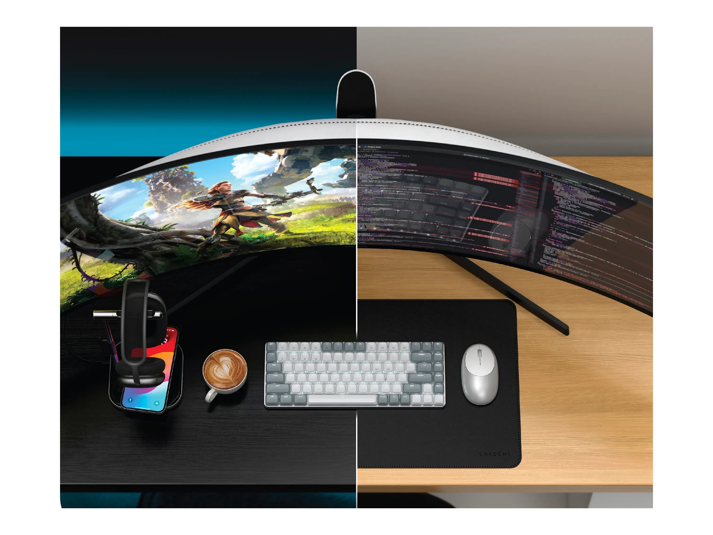 Satechi SM1 Slim - Tastatur - Slim - 75% - compact - hinterleuchtet - kabellos - Bluetooth 5.0, 2.4 GHz - QWERTZ - Deutsch - Tastenschalter: Low Profile Brown Tactile - Licht