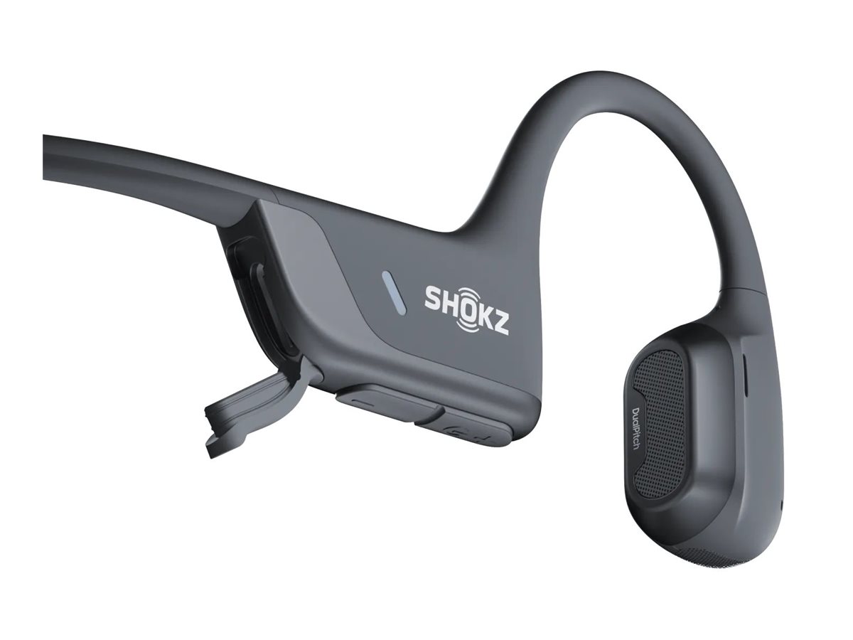 Produkttyp: Kopfhörer - Bluetooth - kabellos,Kompatibilität: Android Telefon, Android-Tablet, iPhone, iPad,Stil: Sport,Gewicht: 30.3 g,Farbe: Schwarz,Gehäusematerial: Silikon, Kunststoff, Nickel-Titan,Empfohlene Verwendung: Tragbare Elektronik,Merkmale: Schnellladung, Kompatibel mit der Shokz-App, Multipoint Pairing, Air Conduction Technology, KI-Rauschunterdrückung,Schutz: Wasserabweisend, schweißresistent,Max. Betriebsabstand: 10 m,Kopfhörer-Formfaktor: Offenes Ohr - hinter dem Nacken angebracht,Kopfhörertechnik: Knochenleitung,Anschlusstechnik: Kabellos,Drahtlose Technologie: Bluetooth,Bluetooth Audio Codec: SBC,Bluetooth-Version: Bluetooth 5.3,Bluetooth-Profile: Erweitertes Audio-Verteilungsprofil (E2VP), Audio/Video Fernsteuerungsprofil (AVFSP), Handsfree-Profil (HFP),Soundmodus: Stereo,Soundeffekte: 3D-Sound, Bass Boost, Treble Boost, Vocal-Boost,Frequenzgang: 20 - 20000 Hz,Empfindlichkeit: 101.3 dB +/- 3dB,Knochenleitungstechnologie: Ja,Besonderheiten: 6 EQ-Modi, DualPitch-Technologie, DirectPitch Technology, Technologie der dynamischen Bereichskompression (DRC),Formfaktor: Eingebaut,Mit Mikrofonen: 2,Empfindlichkeit: -38 dB,Empfindlichkeitsbereich: +/- 1dB,Geräuschunterdrückung: Ja,Steuerung: Mehrfunktionsknopf, Lautstärkeregler,Zubehör im Lieferumfang: Schutzhülle, USB-C-Ladekabel,Kabeldetails: USB-C Ladekabel - ablösbar,Kennzeichnung: IP55,Batterie: Headsetbatterie wiederaufladbar,Kapazität: 150 mAh,Betriebszeit (bis zu): 12 Stunde(n),Laufzeitdetails: Andauernde Wiedergabe: bis zu 12 Stunden ¦ Andauernde Wiedergabe (mit 5 Minuten Schnellladung): bis zu 2.5 Stunden,Standby-Zeit: 10 Tage,Ladezeit: 1 Stunde,Service und Support: Begrenzte Garantie - 2 Jahre,Min Betriebstemperatur: 0 °C,Max. Betriebstemperatur: 40 °C