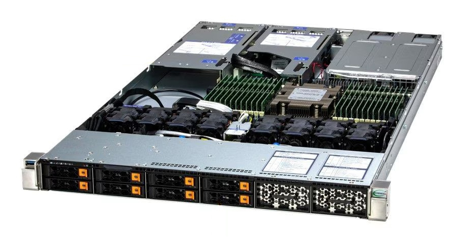 Supermicro AS -1115HS-TNR. Prozessorsockel: Socket SP5, Prozessorhersteller: AMD, Prozessorfamilie: AMD EPYC. Unterstützte Arbeitsspeicher: DDR5-SDRAM, RAM-Speicher maximal: 6 TB, Gepufferter Speichertyp: Registered (buffered). unterstützte Speicherlaufwerksgrößen: 2.5", Unterstützte Speicherlaufwerke: HDD & SSD, Unterstützte Speicherlaufwerk-Schnittstellen: M.2, PCI Express, SATA, Serial Attached SCSI (SAS). Ethernet Schnittstellen Typ: Gigabit Ethernet, Ethernet LAN Datentransferraten: 10,100,1000 Mbit/s. Gehäusetyp: Rack (1U), Produktfarbe: Schwarz, Silber