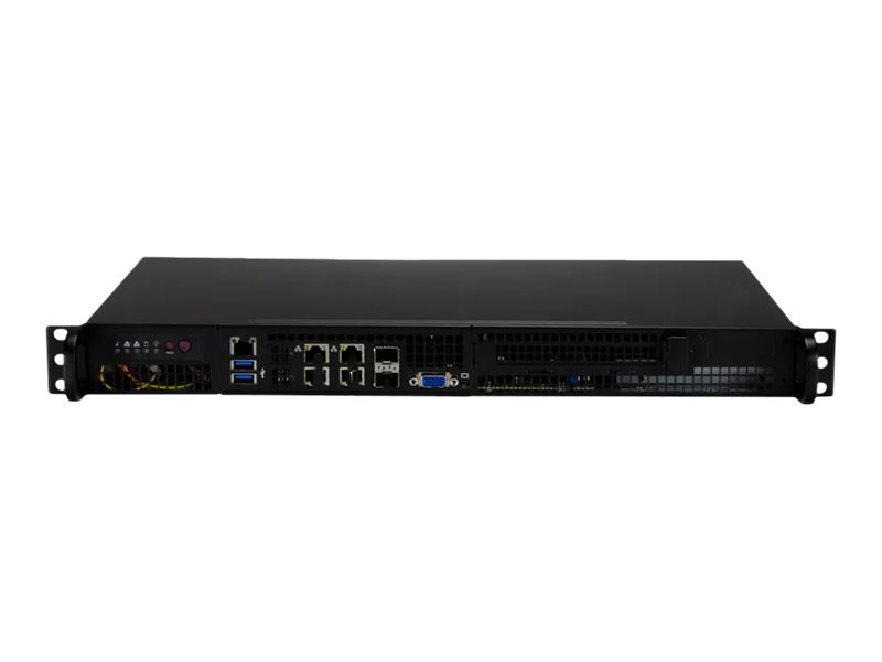 Supermicro SYS-510D-10C-FN6P. Motherboard Chipsatz: Intel SoC, Prozessorsockel: BGA 2227, Prozessorhersteller: Intel. Unterstützte Arbeitsspeicher: DDR4-SDRAM, RAM-Speicher maximal: 256 GB, Gepufferter Speichertyp: Registered (buffered). unterstützte Speicherlaufwerksgrößen: 2.5", Unterstützte Speicherlaufwerk-Schnittstellen: SATA. Ethernet Schnittstellen Typ: Gigabit Ethernet, LAN-Controller: Intel® I210-IT, Intel® I350-AM2. Gehäusetyp: Rack (1U), Produktfarbe: Schwarz, Anzahl Lüfter: 4 Lüfter