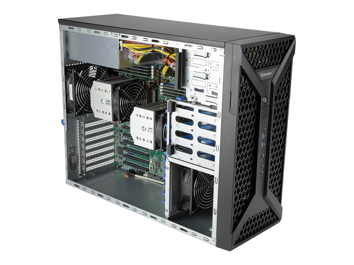 Supermicro SYS-730A-I. Gehäusetyp: Midi Tower, Produkttyp: Arbeitsstation. Motherboard Chipsatz: Intel® C621, BIOS-Typ: AMI. RAM-Speicher maximal: 5 TB. Anzahl Ethernet-LAN-Anschlüsse (RJ-45): 2. Stromversorgung: 1200 W
